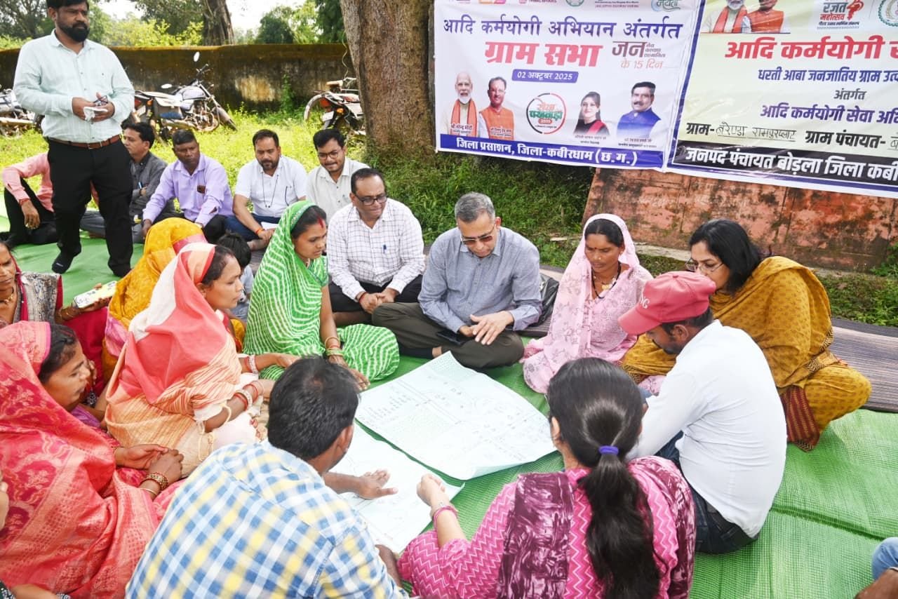 कबीरधाम, 3 अक्टूबर 2025:- भारत सरकार के महत्वाकांक्षी आदि कर्मयोगी अभियान के तहत कबीरधाम जिले के बोड़ला विकासखंड के सुदूर वनांचल ग्राम पंचायत तितरी, बरेन्डा और खारा में गांधी जयंती 2 अक्टूबर को आयोजित विशेष ग्राम सभाओं के साथ नई दिशा में आगे बढ़ा। इन ग्राम पंचायत के ग्राम सभा में भारत सरकार द्वारा नियुक्त छत्तीसगढ़ राज्य नोडल अधिकारी एवं भारत सरकार के ट्राईफेड के प्रबंध संचालक एम. राज मुरूगन विशेष रूप से कबीरधाम पहुंचे। उन्होंने ग्राम सभाओं में शामिल हुए और वर्ष 2030 तक के ग्राम विकास के कार्याे को आगे बढ़ाया।