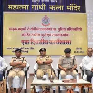 भिलाई नगर 19 मार्च 2025:- Narcotics Control Bureau के अधिकारीयों ने दिया प्रशिक्षण  19 मार्च 2025 को महात्मा गांधी कला मंदिर, सिविक सेंटर में दुर्ग एवं राजनांदगांव रेंज के पुलिस अधिकारियों और विवेचकों के लिए मादक पदार्थों से संबंधित प्रकरणों की प्रभावी विवेचना पर एक दिवसीय रेंज स्तरीय कार्यशाला का आयोजन किया गया। इस कार्यशाला में 150 से अधिक विवेचक एवं अधिकारी सम्मिलित हुए।