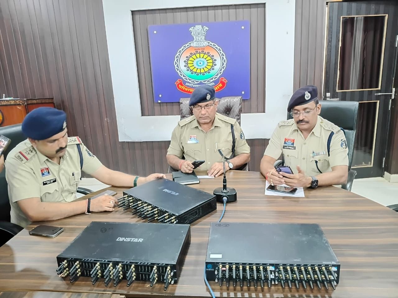 आरोपी के कब्जे से 03 कॉल कन्वर्टर मशीन, 01 लैपटॉप, 105 सीम, 05 मोबाईल बरामद।