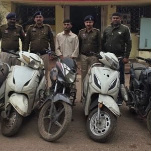 जप्त संपत्ती – वाहन मो.सा. बजाज प्लसर150 क्रमांक CG 07 BW 7150, बिना नंबर मो.सा. होण्डा साईन ग्रे कलर, 03 नग सफेद रंग की स्कूटी बिना नंबर कुल किमती 1,55,000/- रूपये