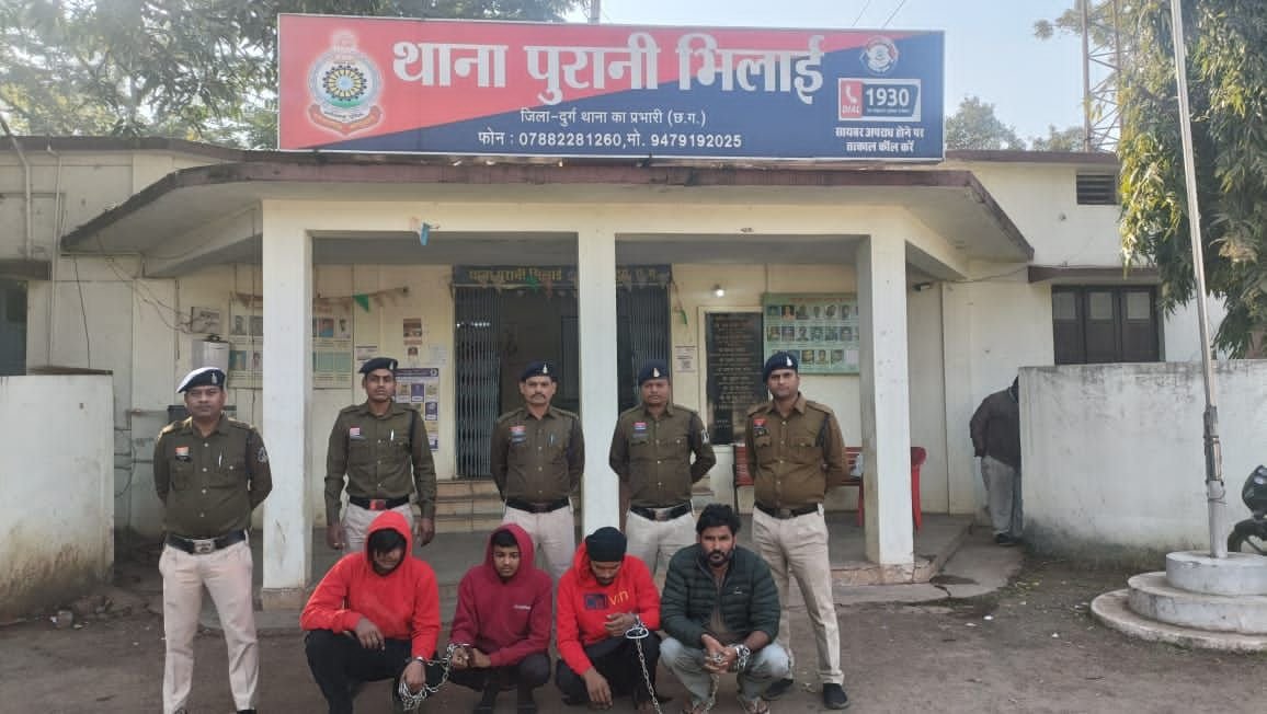 एल्युमिनियम फाईल में चिट्टा रखकर लाईटर की सहायता से ये सभी चिट्टा का सेवन करते रंगे हाथों पाये गये। आरोपियों के विरुद्ध विधिवत कार्यवाही करते हुए रवेल सिंह से 6.50 मिली ग्राम चिट्टा बिक्री रकम 27,500 रू०, दिशान्त से 2.10 मिली ग्राम चिट्टा वरना कार, एल्युमिनियम फाईल, लाईटर, रोहित गुप्ता से 0.58 मिली ग्राम चिट्टा एल्युमिनियम फाईल, लाईटर, ओमकार सिंह उर्फ गोली से 0.51 मिली ग्राम चिट्टाएल्युमिनियम फाईल, लाईटर अन्य विधि से संघर्षरत बालक पहले से 0. 53 मिली ग्राम चिट्टा एल्युमिनियम फाईल, लाईटर एवं दुसरे से 0.48 मिली ग्राम एल्युमिनियम फाईल, लाईटर जप्त किया गया है। सभी के विरूद्ध थाना पुरानी भिलाई में अप.क. 517/2025 धारा 27 (क), 21 (क), (ख) एनडीपीएस एक्ट की कार्यवाही कर गिरफ्तार कर की जा रही है। चिट्टा प्राप्ति के स्रोत के संबंध में पूछताछ की जा रही है। किशोर बालकों को मनः प्रभावी सिन्थेटिक चिट्टा बेचने के संबंध में किशोर न्याय अधिनियम के तहत एवं आरोपियों का अपराधिक रिकार्ड खंगाल कर संगठित अपराध की कार्यवाही भी की जा रही है। गिरफ्तार आरोपी :-