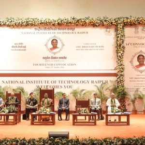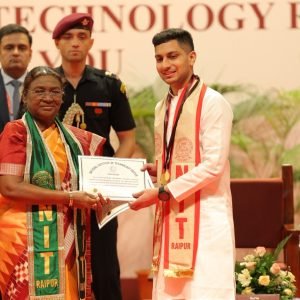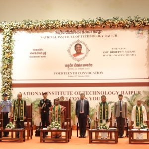 रायपुर, 25 अक्टूबर 2024 :- राष्ट्रीय प्रौद्योगिकी संस्थान, रायपुर के लिए आज 25 अक्टूबर का दिन ऐतिहासिक रहा। देश की राष्ट्रपति श्रीमती द्रौपदी मुर्मु ने आज संस्थान के 14वें दीक्षांत समारोह में अपनी गरिमामय मौजूदगी दी और 12 होनहार विद्यार्थियों को उनकी बेहतरीन शैक्षणिक उपलब्धियों के लिए अपने हाथों से स्वर्ण पदक प्रदान किया। राज्यपाल रमेन डेका, मुख्यमंत्री विष्णु देव साय और केन्द्रीय राज्य मंत्री तोखन साहू भी दीक्षांत समारोह में विशिष्ट अतिथि के रूप में शामिल हुए।