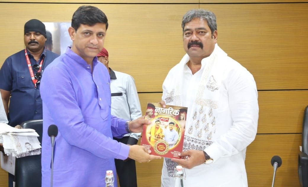 इंदौर महापौर पुष्यमित्र भार्गव, नगर निगम भिलाई महापौर नीरज पाल को सम्मानित किए।