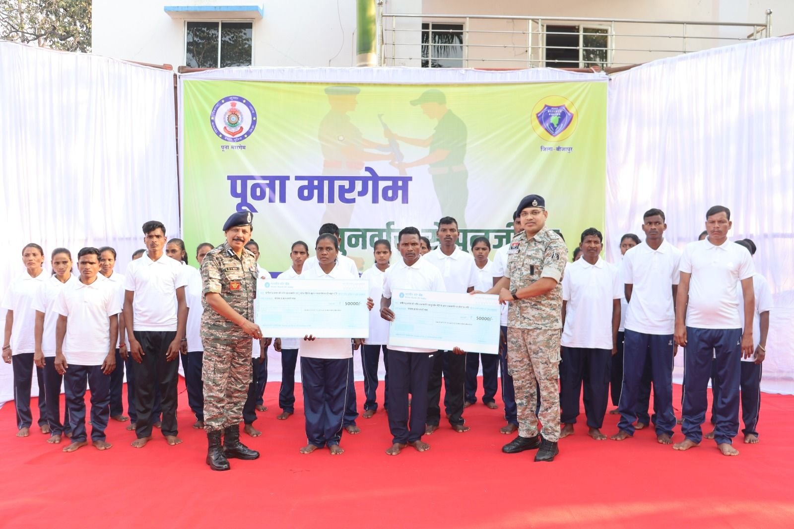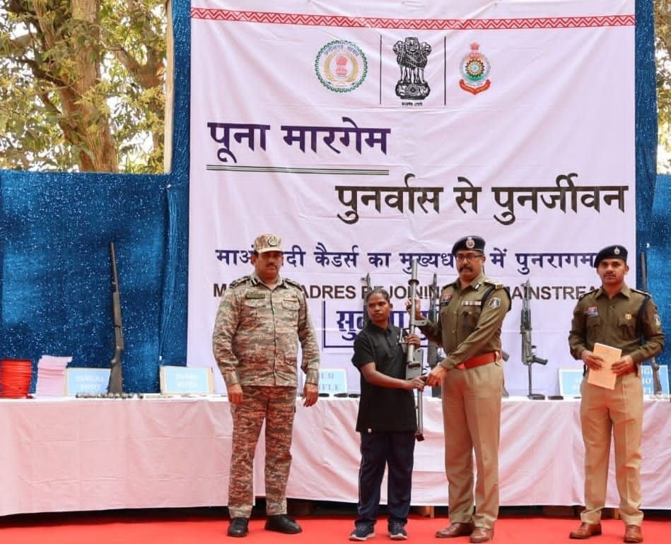 आत्मसमर्पण करने वाले कैडरों द्वारा AK-47, SLR, INSAS राइफल, BGL लॉन्चर सहित अन्य हथियार एवं गोला-बारूद शासन को विधिवत् सौंपते हुए सामाजिक मुख्यधारा में शामिल हुए।