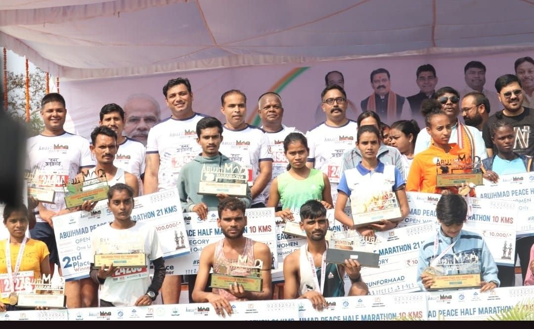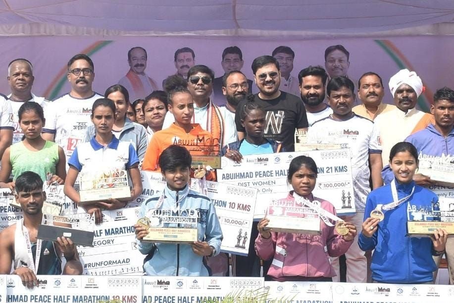 नारायणपुर जिले में आयोजित अबूझमाड़ पीस हाफ मैराथन 2025 में 11 हजार से अधिक धावकों ने भाग लिया, जिसमें राष्ट्रीय और अंतरराष्ट्रीय धावकों की शानदार प्रतिस्पर्धा देखने को मिली। इस मैराथन में उत्तर प्रदेश के अक्षय कुमार ने पुरुष वर्ग में और इथियोपिया की हिवेत जेब्रीवाहिद ने महिला वर्ग में बाजी मारी।