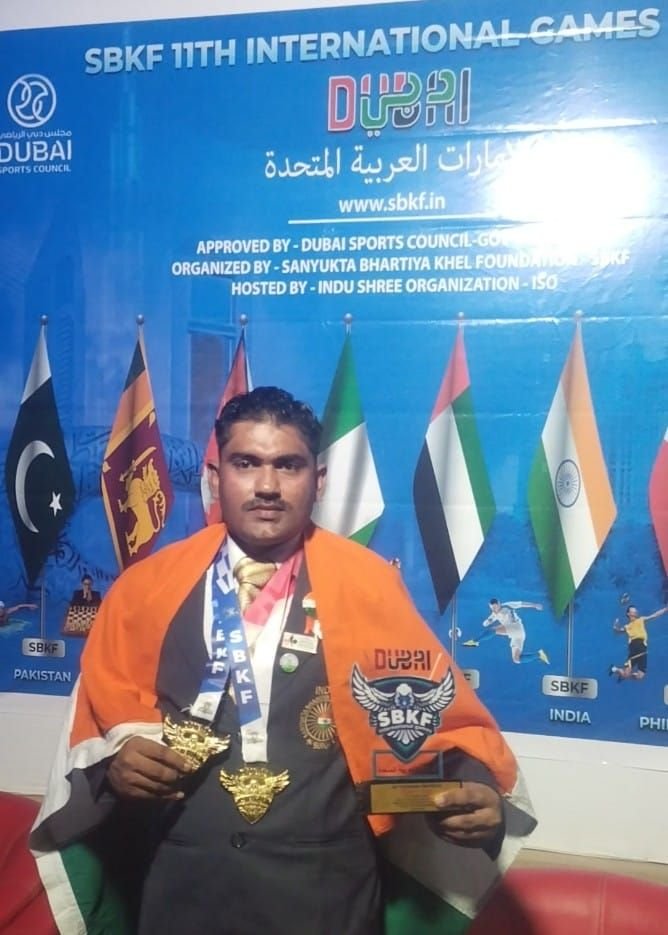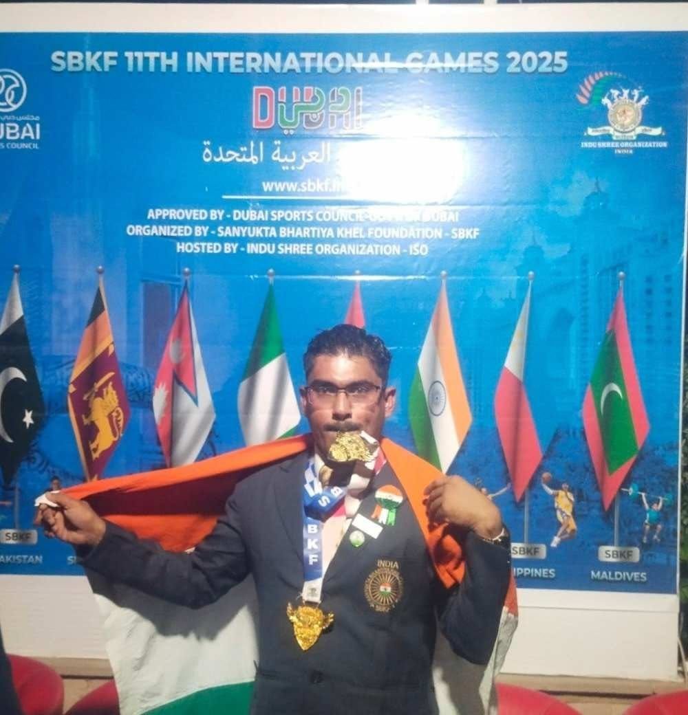 राजनांदगांव 02 मई 2025 :- सितलेश पटेल 22 से 28 अप्रैल तक यूएई दुबई में आयोजित 11वीं अंतर्राष्ट्रीय चौंपियनशिप खेल में गोल्ड जीता है, ज्ञात हो की सितलेश पटेल भारत देश के एकलौते ऐसे खिलाडी हैं, जो वेटलिफ्टिंग, पॉवरलिफ्टिंग व स्ट्रेंथलिफ्टिंग तीनों ही खेलों में अंतर्राष्ट्रीय स्वर्ण पदक विजेता हैं।