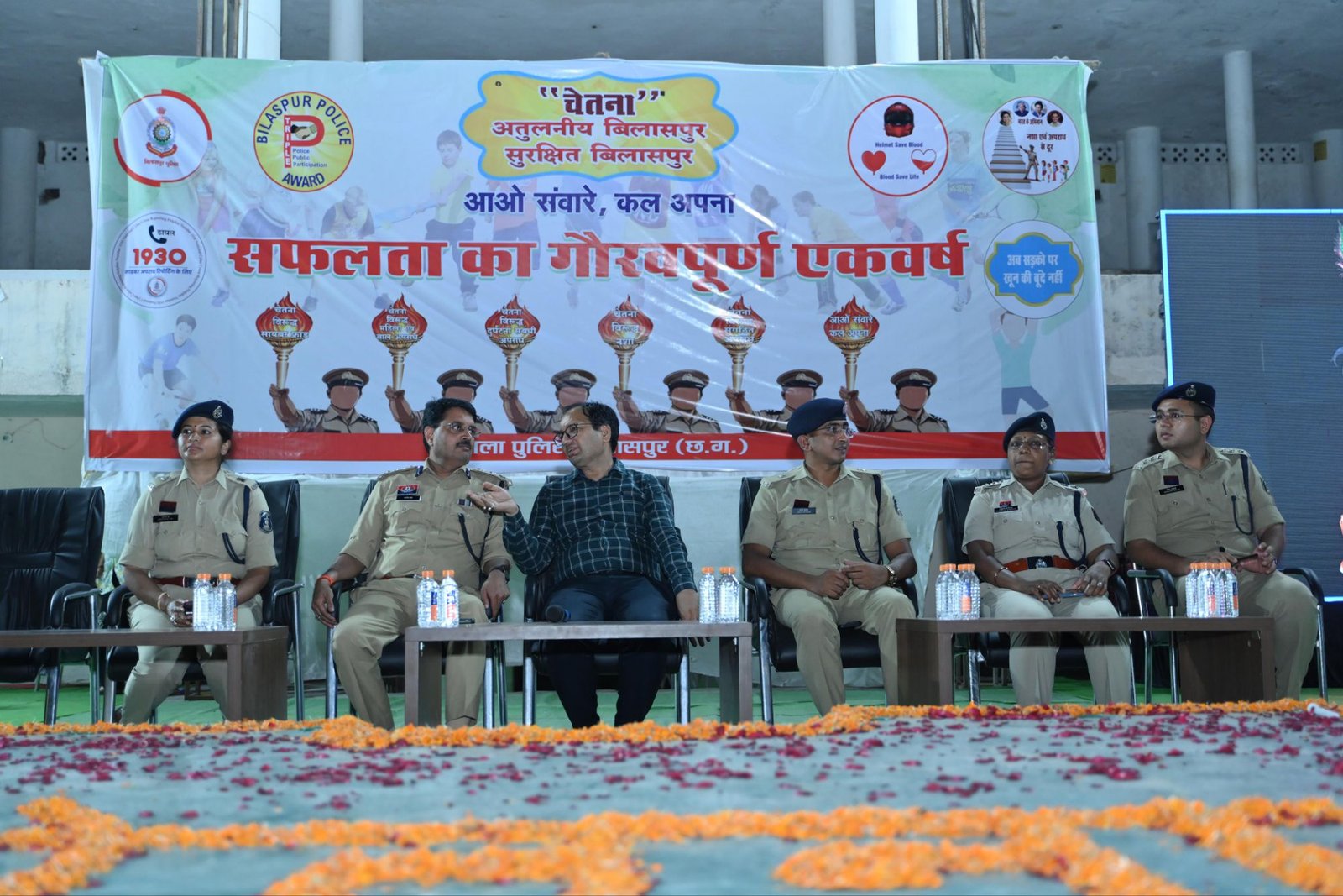 बिलासपुर 02 जून 2025:- को बिलासपुर पुलिस द्वारा वरिष्ठ पुलिस अधीक्षक रजनेश सिंह के मार्गदर्शन में संचालित सामुदायिक पुलिसिंग कार्यक्रम “चेतना” के एक वर्ष पूर्ण होने और पुलिस लाइन बिलासपुर में ग्रीष्मकालीन अवकाश के दौरान बच्चों के लिए आयोजित विशेष शिविर “आओ संवारे कल अपना” के समापन के अवसर पर पुलिस ग्राउंड, बिलासपुर में एक भव्य आयोजन किया गया।