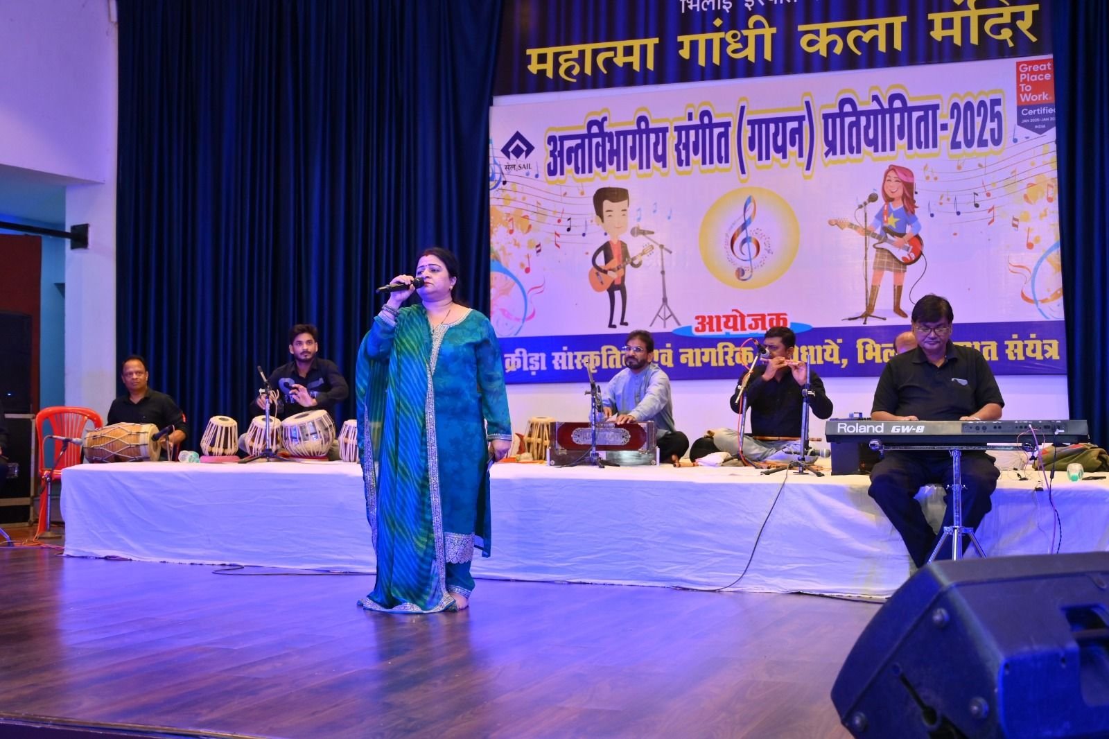 भिलाई नगर 30 जून 2025:- सेल- भिलाई इस्पात सयंत्र के क्रीड़ा, सांस्कृतिक एवं नागरिक सुविधाएँ विभाग के तत्वावधान में प्रतिवर्षानुसार अंतर्विभागीय संगीत (गायन) प्रतियोगिता 2025 का आयोजन 24 से 28 जून 2025 तक महात्मा गाँधी कला मंदिर, सिविक सेंटर में किया गया। इस पांच दिवसीय प्रतियोगिता के समापन व पुरस्कार वितरण समारोह 28 जून 2025 को कार्यपालक निदेशक (मानव संसाधन) पवन कुमार के मुख्य आतिथ्य में संपन्न हुआ।