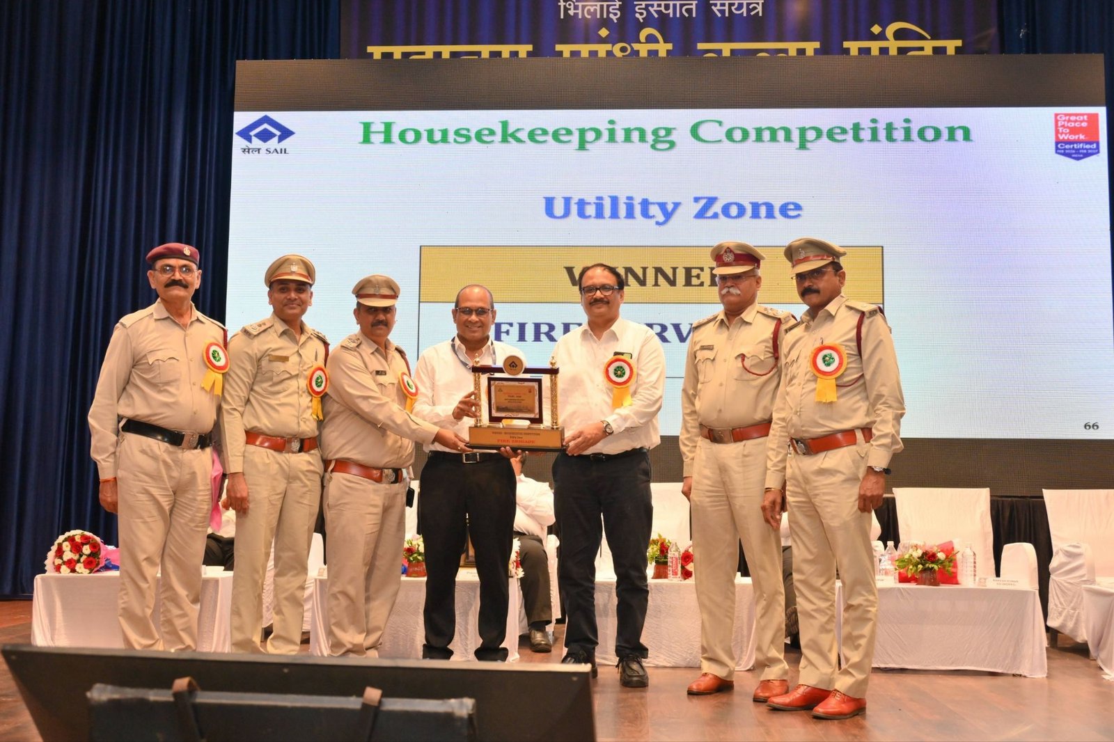 इस अवसर पर विभिन्न श्रेणियों में पुरस्कारों की घोषणा की गई, जिसमें सुरक्षा कैलेंडर, सुरक्षा नाटक, सुरक्षा कविता, सुरक्षा गीत, सुरक्षा क्विज और नियर-मिस रिपोर्टिंग पुरस्कार, सर्वश्रेष्ठ सेफ्टी वारियर पुरस्कार आदि सहित विभिन्न प्रतियोगिताओं और श्रेणियों में शामिल थे। सुरक्षा जागरूकता बढ़ाने के लिए क्षेत्रवार सर्वश्रेष्ठ हाउसकीपिंग पुरस्कार आदि सहित विभिन्न श्रेणियों के लिए पुरस्कार और सम्मान गणमान्य व्यक्तियों और अन्य विशेष अतिथियों द्वारा वितरित किये गए। सर्वश्रेष्ठ डीआईसी पुरस्कार एसएमएस-3 एवं सर्वश्रेष्ठ नियर-मिस रिपोर्टिंग पुरस्कार बीआरएम की टीमों को मिले, जबकि जोन-वार सर्वश्रेष्ठ हाउसकीपिंग पुरस्कार श्रेणी में आयरन एंड स्टील जोन से सीओएंडसीसीडी, मिल्स जोन से प्लेट मील, बल्क मटेरियल्स हैंडलिंग जोन से एसपी- 3 और यूटिलिटीज जोन से अग्निशमन सेवा विभाग, शॉप एंड सर्विसेज जोन (ए) और (बी) से इलेक्ट्रिकल रिपेयर शॉप और सीआरएम(ई) ने क्रमशः विजेता पुरस्कार प्राप्त किये। इस अवसर पर संबंधित प्रतियोगिताओं के निर्णायकों को भी सम्मानित किया गया।