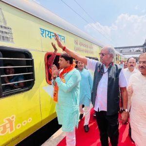 रायपुर, 08 अक्टूबर 2025/ आज रायपुर रेलवे स्टेशन से रायपुर संभाग के 850 तीर्थ यात्रियों को लेकर स्पेशल ट्रेन प्रभु श्री रामलला के दर्शन के लिए अयोध्या धाम रवाना हुई। इस यात्रा के दौरान तीर्थ यात्री काशी भी जाएंगे और वहां विश्वनाथ जी के दर्शन भी करेंगे। इस अवसर पर सांसद बृजमोहन अग्रवाल, विधायक सुनील सोनी, मोतीलाल साहू, इंद्र कुमार साहू, अध्यक्ष जिला पंचायत रायपुर, छत्तीसगढ़ टूरिज्म बोर्ड के अध्यक्ष नीलू शर्मा एवं प्रबंध संचालक विवेक आचार्य ने ट्रेन को हरी झंडी दिखाकर रवाना किया एवं श्रद्धालुओं को बधाई एवं शुभकामनाएं दी।