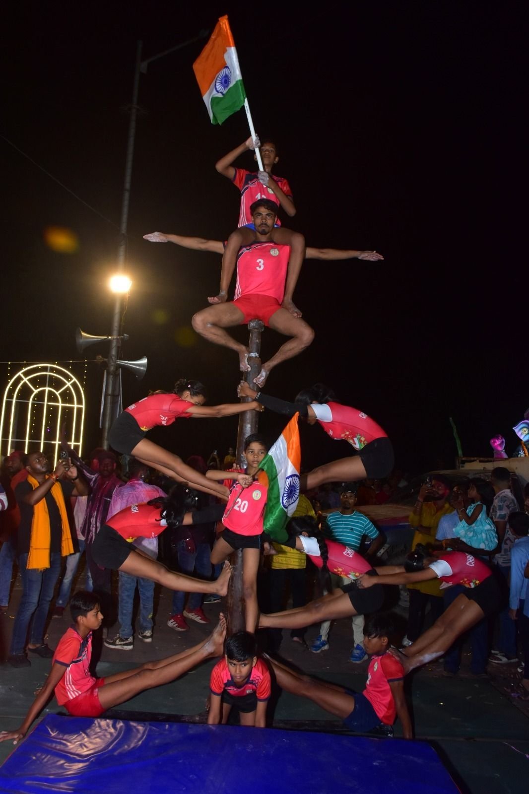 मलखंभ के खिलाड़ियों ने हैरत अंगेज प्रदर्शन कर सेना और पुलिस को किया नमन