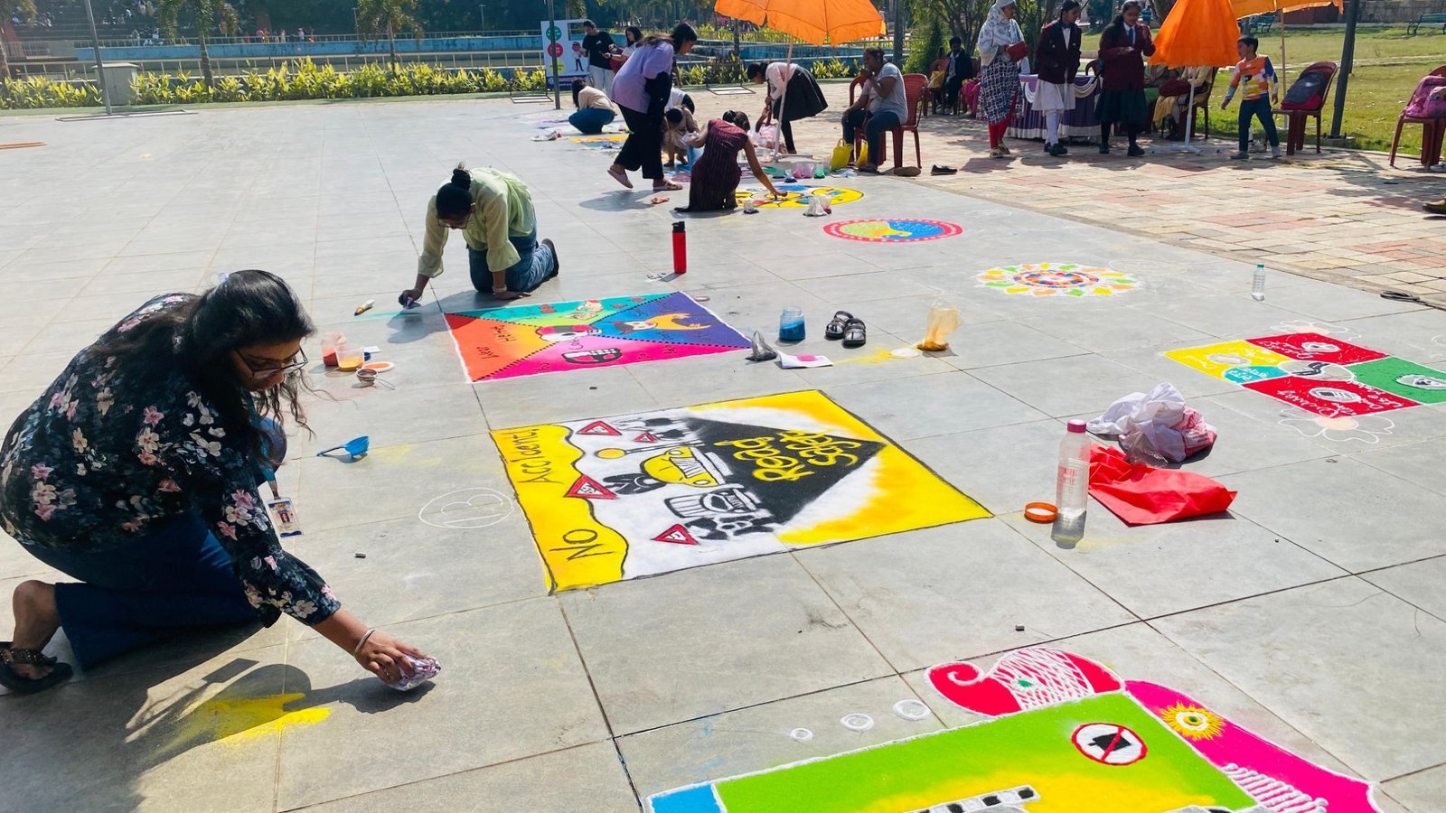 बच्चों द्वारा यातायात जागरूकता पर अलग अलग विभिन्न प्रकार के पेंटिंग / रंगोली बनाये गये।