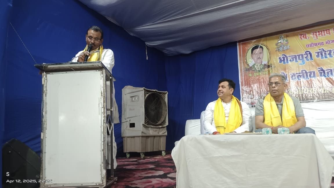 भिलाई नगर 13 अप्रैल 2025:- छग भोजपुरी परिषद के द्वारा स्व सुभाष शर्मा के स्मृति में 12 अप्रैल की रात्रि 8 बजे से बैकुंठ धाम केम्प 2 भिलाई में भोजपुरी गौरव सम्मान व उत्तरप्रदेश / बिहार के मशहूर कलाकार ब्यास सुरेन्द्र सिह,( जिला बलिया) व ब्यास साहेब सिह (जिला छपरा)द्वारा सास्कृतिक कार्यक्रम चैता का रंगारंग मुकाबला हुआ।