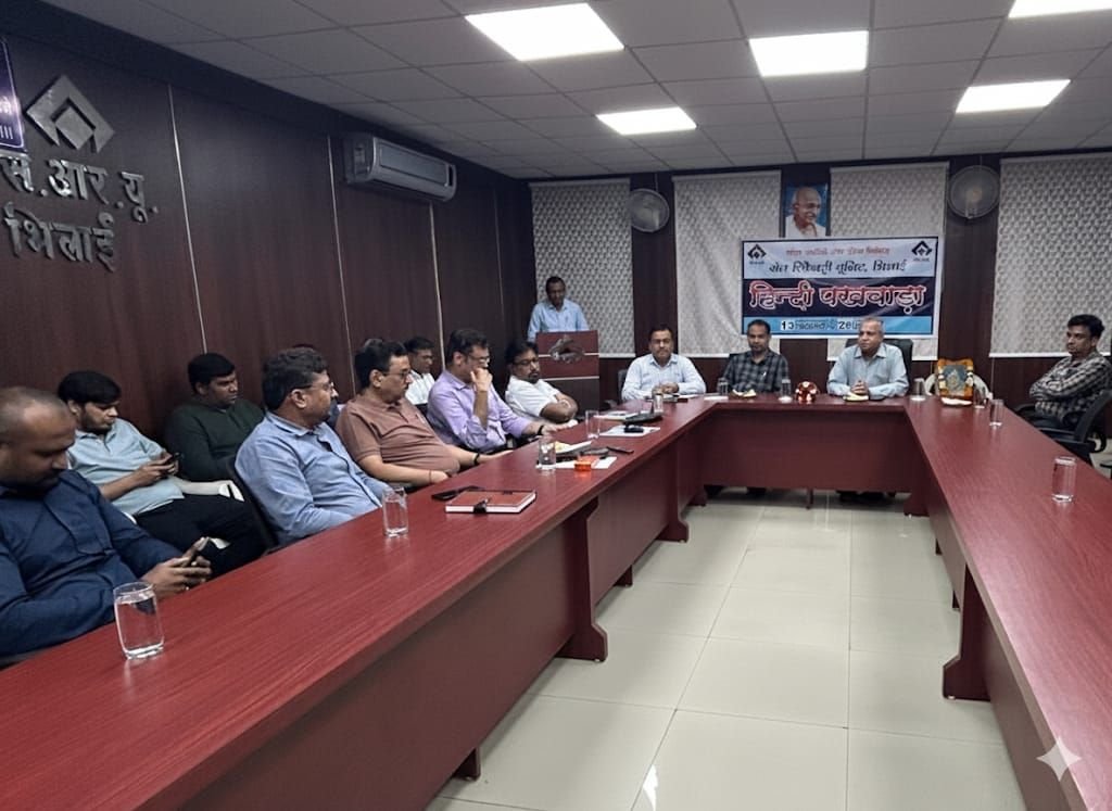 सबसे पहले आर.सी. भोई ने उपस्थित अधिकारियों, कर्मचारियों एवं ठेका श्रमीकों को अपना हर कार्यालयीन कार्य हिंदी में करने एवं हिंदी का प्रचार–प्रसार करनें की शपथ दिलवाई | इसके बाद अपने उद्बोधन के दौरान उन्होंने एसआरयू, भिलाई को मिले दोनों पुरस्कारों के बारे में जानकारी साझा की | इसके बाद डॉ. प्रियंका दास ने इस पखवाड़े में होने वाले कार्यशाला, नारा, निबंध, एवं प्रश्नोत्तरी प्रतियोगिताओं के बारे में जानकारी साझा की |