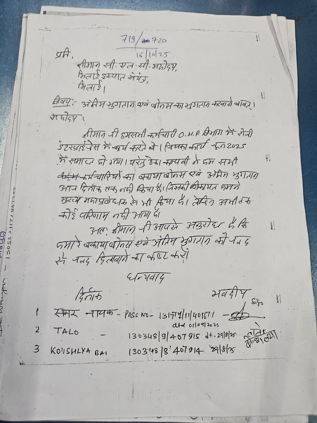 भिलाई इस्पात संयंत्र: ठेका श्रमिकों के बकाया बोनस और लीव एनकैशमेंट के भुगतान हेतु भिलाई इस्पात मजदूर संघ (BMS) ने सौंपा ज्ञापन
