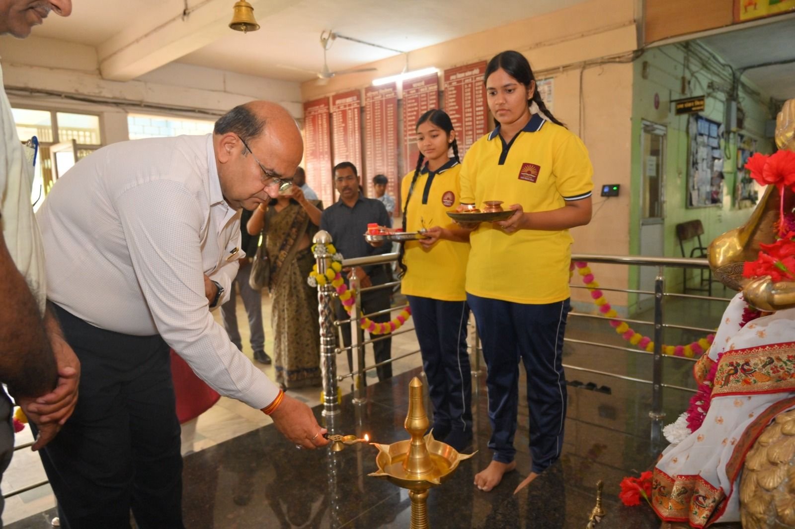 समारोह की शुरुआत सरस्वती वंदना और दीप प्रज्वलन के साथ हुई। विद्यार्थियों ने स्वागत गीत प्रस्तुत कर अतिथियों का अभिनंदन किया।