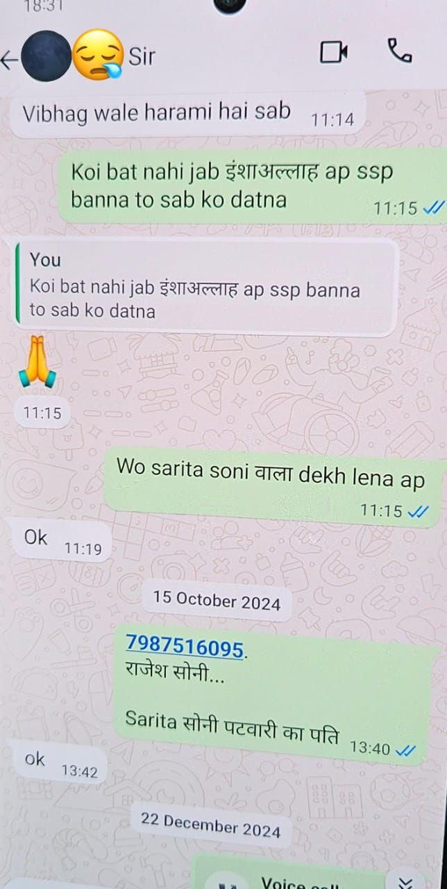 व्हाट्सएप चैट की यह लीक कॉपी अब पूरे पुलिस सिस्टम पर सवाल उठा रही है। नीचे दर्ज हुई बातचीत इस गठजोड़ की खौफनाक पुष्टि करती है: