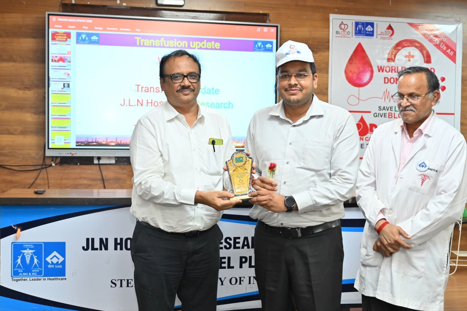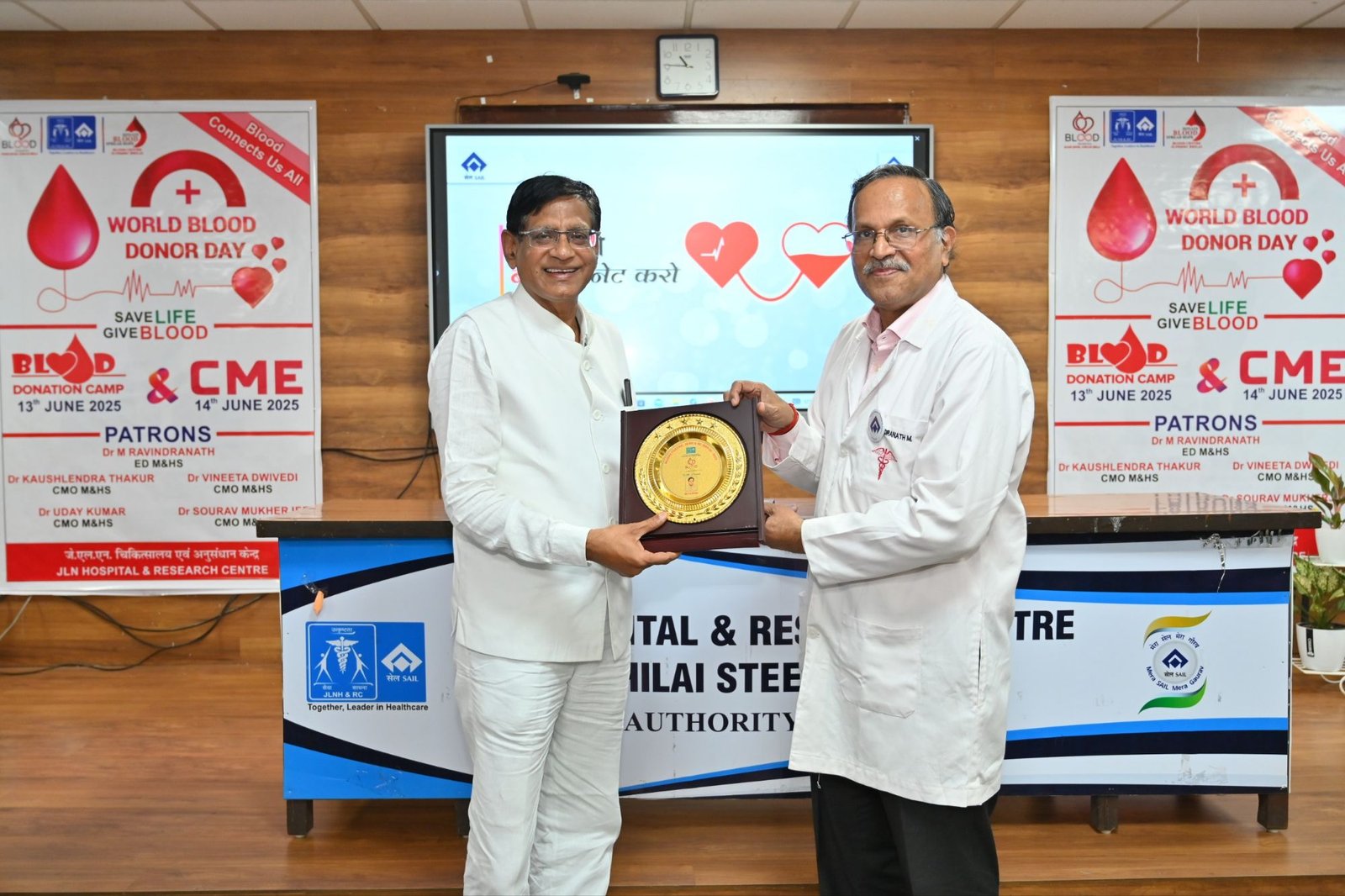 सेल-भिलाई इस्पात संयंत्र के चिकित्सा एवं स्वास्थ्य सेवाएं विभाग के अंतर्गत संचालित जेएलएन चिकित्सालय एवं अनुसंधान केन्द्र के ब्लड सेंटर द्वारा विश्व रक्तदाता दिवस 2025 के उपलक्ष्य पर दो दिवसीय विशेष कार्यक्रम का आयोजन किया गया, जिसका उद्देश्य स्वैच्छिक रक्तदान के महत्व को रेखांकित करना और आधुनिक ब्लड ट्रांसफ्यूजन प्रथाओं पर चिकित्सकों को अद्यतन जानकारी प्रदान करना था। यह आयोजन कार्यपालक निदेशक (चिकित्सा एवं स्वास्थ्य सेवा) डॉ. एम. रवीन्द्रनाथ के मार्गदर्शन में तथा संबंधित मुख्य चिकित्सा अधिकारियों के सक्रिय सहयोग से सम्पन्न हुआ।