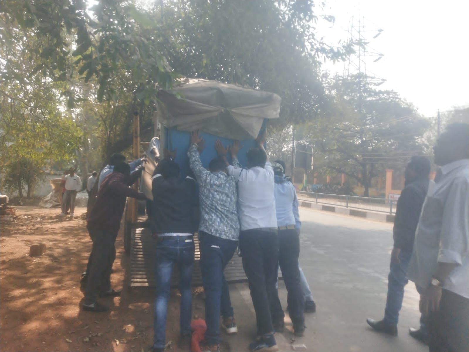 आज प्रवर्तन विभाग द्वारा किए गए कार्यवाही में करीब दो दर्जन ठेले, खोमचे, अवैध दुकानें हटाया गया तथा उन्हें चेतावनी दी गई कि पुनः दुकानें ना लगाए, साथ ही तीन ठेलो को जप्त भी किया गया। इसके पूर्व भी यहां ठेला लगाने वाले अवैध कब्जा करने वाले कुछ दलाल तथा भूमाफियाओं द्वारा दुकानें तथा ठेले लगवाकर वसूली की जा रही है।