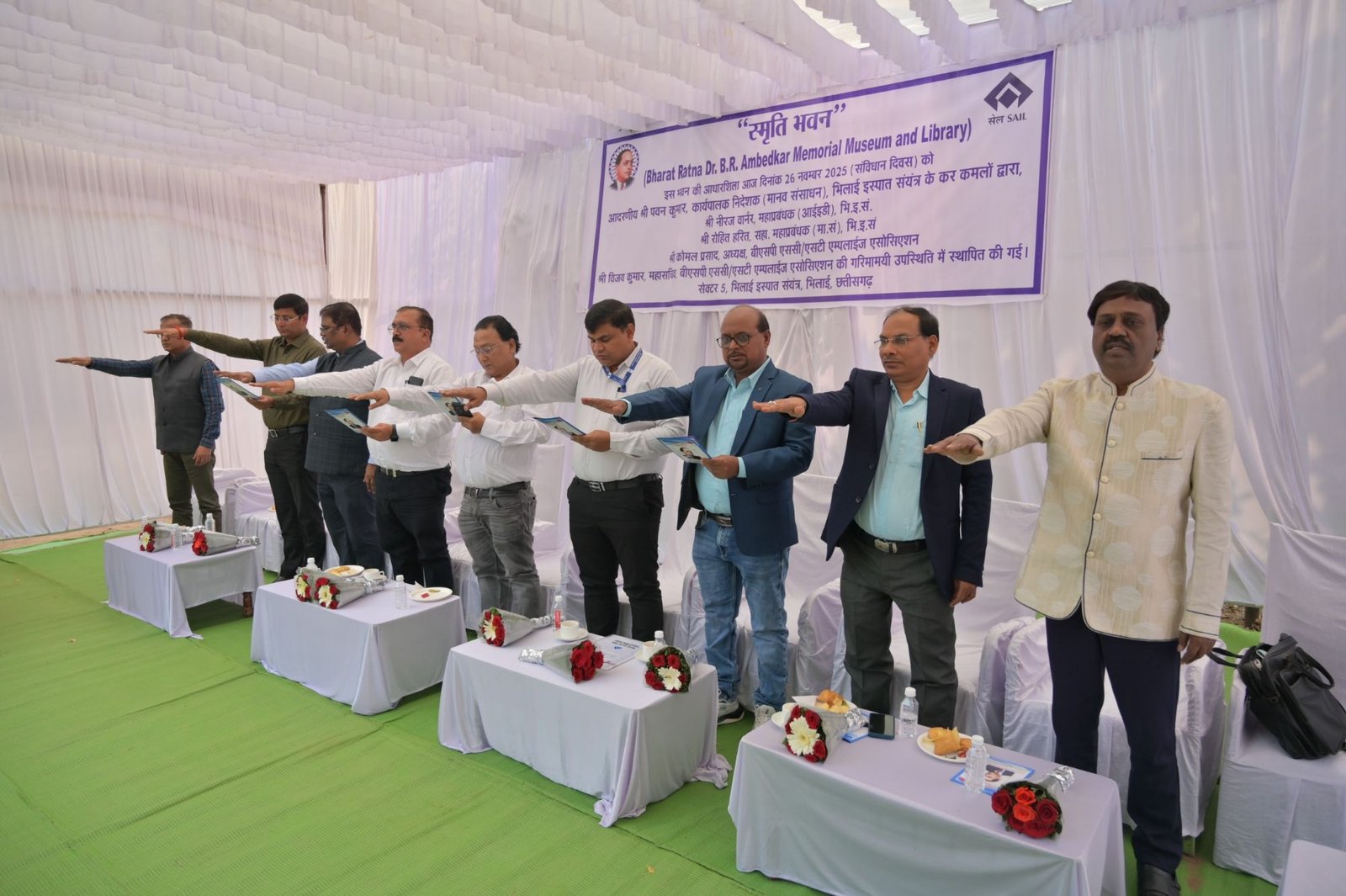 भिलाई नगर 27 नवंबर 2025:- भिलाई इस्पात संयंत्र द्वारा संविधान दिवस के अवसर पर 26 नवंबर, 2025 को “स्मृति भवन” का शिलान्यास तथा भारत रत्न डॉ. बाबा साहेब आंबेडकर संग्रहालय एवं पुस्तकालय भवन की आधारशिला स्थापित की गई। इस अवसर पर मुख्य अतिथि कार्यपालक निदेशक (मानव संसाधन) पवन कुमार थे।