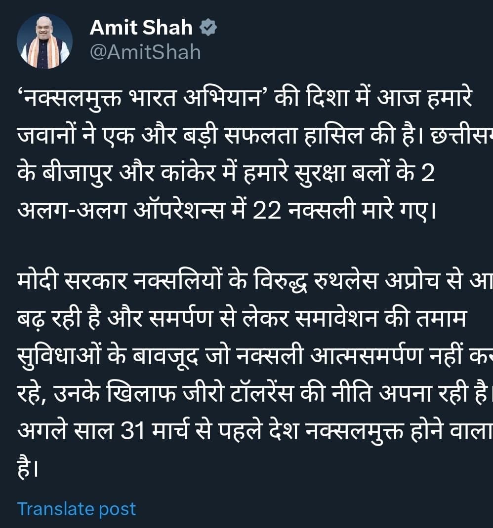 अमित शाह ने की जवानों की सराहना, कहा- अगले साल 31 मार्च से पहले देश नक्सलमुक्त होने वाला है