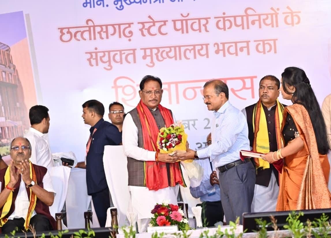 रायपुर, 03 सितंबर 2025 :- मुख्यमंत्री विष्णु देव साय ने आज नवा रायपुर सेक्टर-24 में छत्तीसगढ़ स्टेट पावर कंपनीज के संयुक्त मुख्यालय भवन का शिलान्यास किया। छत्तीसगढ़ के रजत जयंती वर्ष और गणेशोत्सव जैसे पावन अवसर पर सम्पन्न इस समारोह में उन्होंने विधिवत पूजा-अर्चना की और भवन का थ्री-डी मॉडल अनावृत किया। मुख्यमंत्री ने कहा कि यह भवन अधिकारियों और कर्मचारियों की कार्यकुशलता को नई ऊँचाई देगा, तीनों पावर कंपनियों के बीच समन्वय को मजबूत करेगा और उपभोक्ताओं को एक ही छत के नीचे सभी सेवाएँ उपलब्ध कराएगा। उन्होंने इस अवसर पर एक पेड़ माँ के नाम अभियान के अंतर्गत मौलश्री पौधरोपण किया।