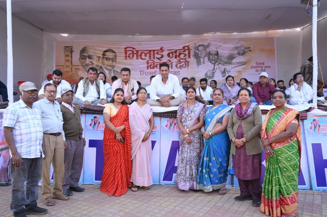 आज धरना स्थल पर पूर्व मंत्री सत्यनारायण शर्मा,पूर्व मंत्री गुरु रुद्र कुमार, बिलाईगड़ विधायक कमला लहरें,पूर्व राज्यमंत्री बीड़ी कुरैशी,कांग्रेस के प्रवक्ता शैलेश नितिन त्रिवेद्वी,सतनाम सिंह,पूर्व विधायक अरुण वोरा,पूर्व महापौर आर.एन वर्मा,सुजीत बघेल, फते सिंह,भाटिया,परविंदर सिंह,महापौर नीरज पाल,पूर्व महापौर आरएन वर्मा,वाय.के.सिंह, लालचंद वर्मा, राजेंद्र सिंह परगनिहा, योगेश सोनी, टी. जोगा राव, लक्ष्मीपति राजू, राजेंद्र शर्मा, रमेश पाल , हीरा बॉक्स, कुशवाहा , मनोज पांडेय, विनोद उपाध्याय,चौरसिया, श्याम लाल साहू, जय प्रकाश नायर ,संजय साहू इंटक ठेका श्रमिक