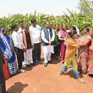 बेमेतरा 06 मई 2025/ मुख्यमंत्री श्री विष्णु देव साय आज सुशासन तिहार के तहत औचक निरीक्षण पर बेमेतरा जिले के ग्राम सहसपुर आये। इस दौरान वे सहसपुर ग्राम के उत्कृष्ट किसान श्री रोहित साहू के खेत में भी पहुंचे। मुख्यमंत्री को श्री साहू ने बताया कि वे पिछले 9 साल से केला और पपीता की खेती कर रहे हैं, जिससे वे लाखों का मुनाफा कमा रहे हैं और 15-20 लोगों को अपने खेत में रोजगार भी दे रहे हैं।