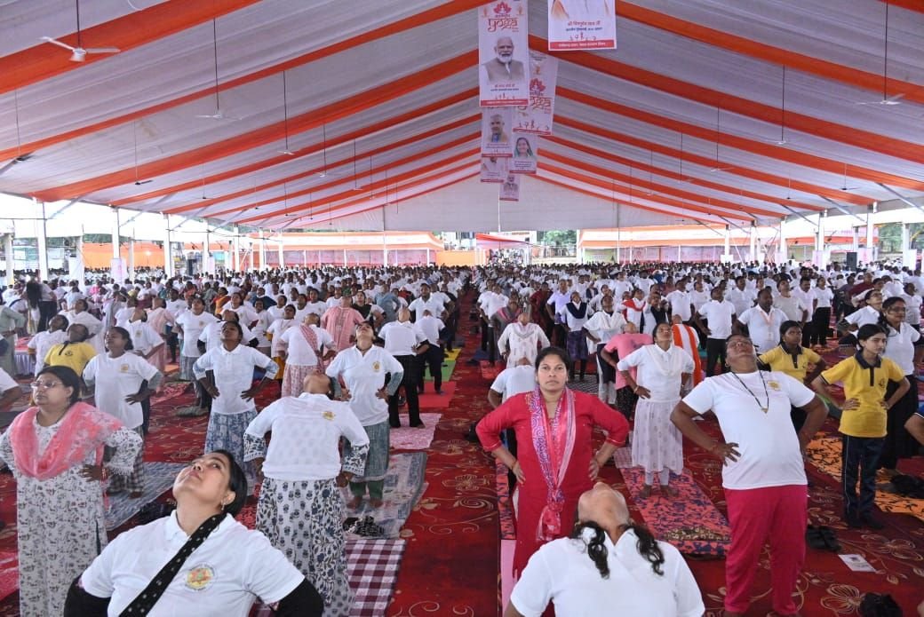 जशपुरनगर 21 जून 2025 /मुख्यमंत्री श्री विष्णु देव साय ने आज जिला मुख्यालय जशपुर में हजारों लोगों के साथ योगाभ्यास किया। उन्होंने अंतरराष्ट्रीय योग दिवस की बधाई एवं शुभकामनाएं दी। मुख्यमंत्री ने कहा की योग हमारे देश के लिए कोई नई विधा नहीं है। सनातन काल से योग हमारे जीवन में चला आ रहा है। हमारे ऋषि मुनियों ने इसका इजाद किया है। प्रधानमंत्री श्री नरेंद्र मोदी ने विश्व पटल पर योग की महत्ता को स्थापित किया। संयुक्त राष्ट्र महासभा में वर्ष 2014 में आवाज उठाई और इसे विश्व स्तर पर स्वीकृति दिलाई। वर्ष 2015 से प्रति 21 जून को विश्व योग दिवस मनाया जा रहा है। हम सब लोगों के लिए बड़े सौभाग्य की बात है कि संयुक्त राष्ट्र महासभा सहित 175 देशों में योग की आवाज गूंज रही है। मुख्यमंत्री के साथ जनप्रतिनिधिगण, स्कूलों बच्चों, आम नागरिकों, अधिकारियों और कर्मचारियों ने उत्साह से योगाभ्यास किया। योग प्रशिक्षक के दौरा चक्र आसन, अर्ध चक्र आसन, कपाल भारती, अनुलोम-विलोम, प्राणायाम, वज्राशन सहित विभिन्न आसन से योगाभ्यास करवाया गया।