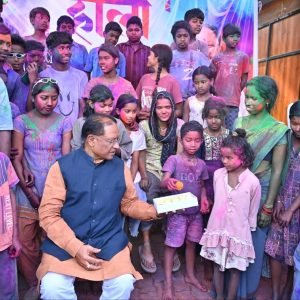 बगिया में बच्चों संग मुख्यमंत्री ने मनाई रंगों की होली