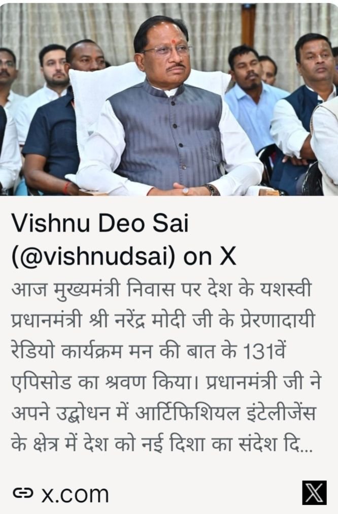 मुख्यमंत्री विष्णु देव साय ने सुनी ‘मन की बात’ की 131 वीं कड़ी….