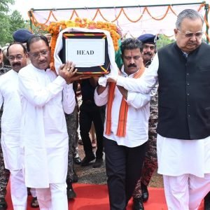 रायपुर 10 जून 2025/मुख्यमंत्री श्री विष्णुदेव साय ने आज सुकमा जिले के कोंटा में नक्सलियों द्वारा किए गए कायरतापूर्ण आईईडी विस्फोट में शहीद हुए एएसपी श्री आकाश राव गिरपुंजे को भावभीनी श्रद्धांजलि अर्पित की और उन्हें अंतिम विदाई दी। मुख्यमंत्री श्री साय ने माना स्थित चौथी वाहिनी छत्तीसगढ़ सशस्त्र बल परिसर पहुंचकर शहीद के पार्थिव शरीर पर पुष्पचक्र अर्पित कर उन्हें नमन किया तथा शहीद के पार्थिव शरीर को कंधा देकर सम्मानपूर्वक विदाई दी।
