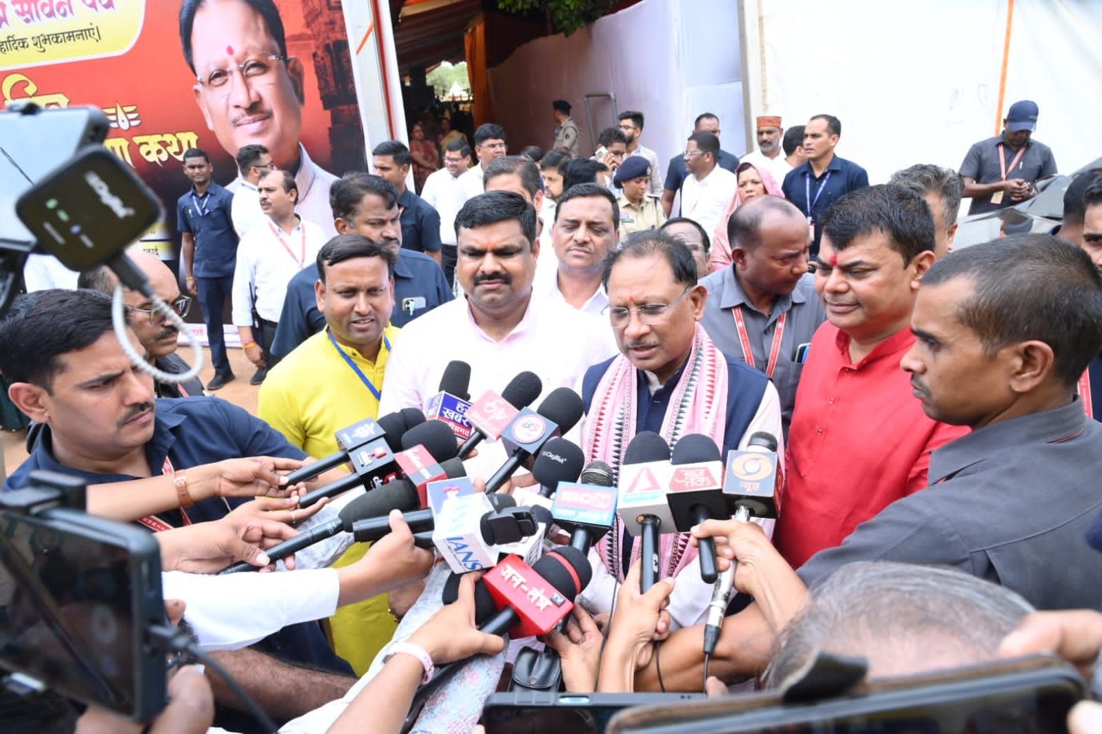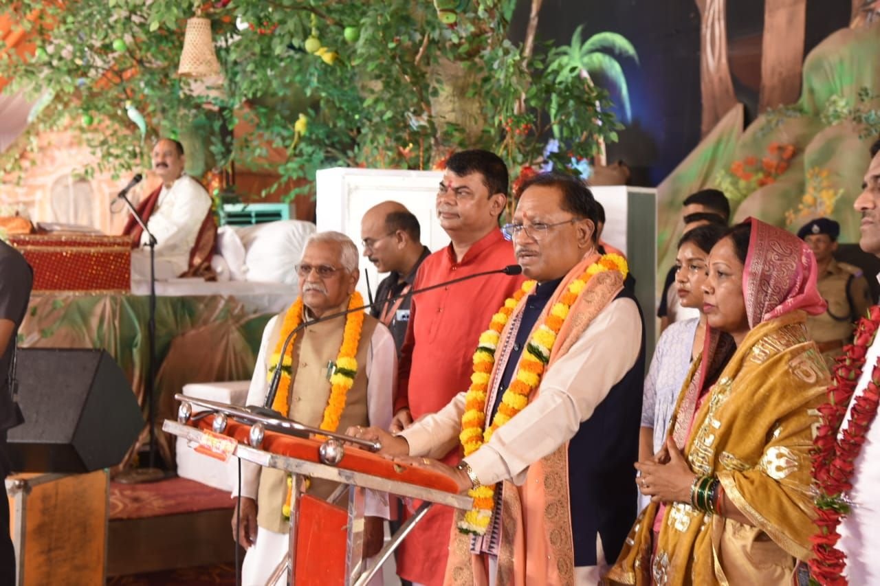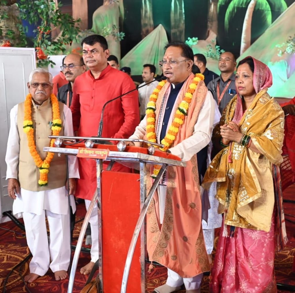 भिलाई नगर , 05 अगस्त 2025:- मुख्यमंत्री विष्णुदेव साय पवित्र श्रावण मास के दौरान भिलाई में आयोजित सात दिवसीय शिव महापुराण कथा के समापन समारोह में आज सपत्निक सम्मिलित हुए। श्रावण मास की इस सात दिवसीय शिव महापुराण कथा श्रृंखला का आयोजन 30 जुलाई से 05 अगस्त 2025 तक बोल बम समिति द्वारा किया गया। जिसमें सिहोर मध्यप्रदेश के प्रसिद्ध कथावाचक पं. प्रदीप मिश्रा महाराज ने शिव महापुराण की अमृतमय कथा से हजारों श्रद्धालुओं को मंत्रमुग्ध किया। मुख्यमंत्री साय ने कथा वाचक पं. मिश्रा और व्यास पीठ से जुड़े संत जनों का छत्तीसगढ़ की 3 करोड़ जनता की ओर से स्वागत एवं अभिवादन किया। उन्होंने आयोजन समिति को तथा समस्त शिव भक्तों व श्रद्धालुओं को पवित्र श्रावण मास की बधाई एवं शुभकामनाएं दी।