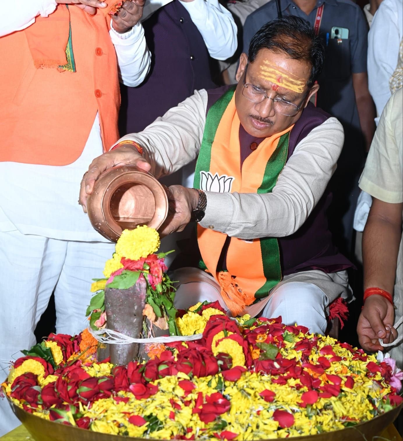 महासमुंद 06 अगस्त 2025:- मुख्यमंत्री विष्णु देव साय आज महासमुंद में विधायक श्री योगेश्वर राजू सिन्हा द्वारा पवित्र श्रावण मास के अवसर पर आयोजित रूद्र महाभिषेक हवन पूजन कार्यक्रम में शामिल हुए।