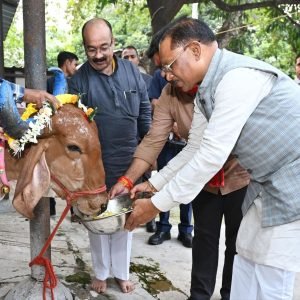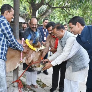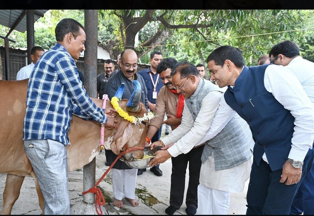 मुख्यमंत्री विष्णु देव साय ने आज गोवर्धन पूजा के अवसर पर अपने निवास की गौशाला में गौवंश की पूजा-अर्चना की और अपने हाथों से खिचड़ी और गुड़ खिलाया। उन्होंने इस मौके पर प्रदेशवासियों की सुख, समृद्धि और खुशहाली की कामना करते हुए गोवर्धन पूजा की शुभकामनाएं दी। इस दौरान उप मुख्यमंत्री अरूण साव, उपमुख्यमंत्री विजय शर्मा, खेल मंत्री टंकराम वर्मा मौजूद रहे।