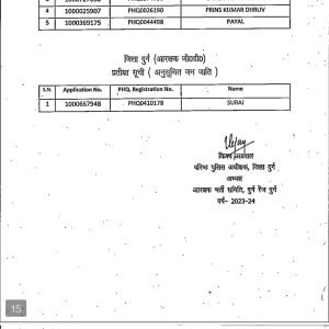 आरक्षक भर्ती परीक्षा वर्ष 2023-24 के आरक्षक जीडी, आरक्षक चालक, और आरक्षक ट्रेड के दुर्ग,बालोद एवं बेमेतरा जिले के चयन/प्रतीक्षा अंतिम परिणाम सूची जारी.…