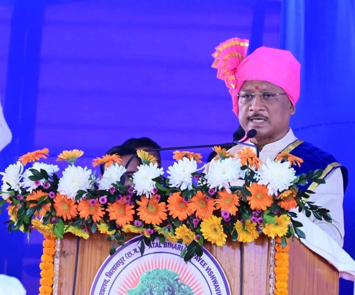 मुख्यमंत्री ने कहा कि विश्वविद्यालयों को राज्य की आवश्यकताओं के अनुरूप कृषि विज्ञान, पर्यावरण संरक्षण, सामाजिक संरचना, भाषा-साहित्य और तकनीकी नवाचार जैसे क्षेत्रों में गुणवत्तापूर्ण शोध को प्रोत्साहित करना चाहिए। उन्होंने कहा कि दीक्षांत समारोह ने विद्यार्थियों, अभिभावकों और शिक्षकों को ज्ञान, अनुशासन और प्रेरणा का एक उत्सव प्रदान किया और अटल बिहारी वाजपेयी विश्वविद्यालय की उच्च शिक्षा में गुणवत्ता और नवाचार की प्रतिबद्धता को उजागर किया।उपमुख्यमंत्री श्री अरुण साव ने कहा कि अटल बिहारी वाजपेयी जी के मार्गदर्शन में बने इस राज्य ने शिक्षा सहित विभिन्न क्षेत्रों में उल्लेखनीय प्रगति की है। उन्होंने विश्वविद्यालय द्वारा गुणवत्तापूर्ण शिक्षा में किए जा रहे प्रयासों की सराहना की। उच्च शिक्षा मंत्री श्री टंक राम वर्मा ने कहा कि दीक्षांत समारोह छात्रों के परिश्रम, संघर्ष और लगन का सम्मान है। उन्होंने बताया कि विश्वविद्यालय में अकादमिक बैंक ऑफ क्रेडिट का प्रभावी उपयोग सुनिश्चित किया जा रहा है तथा 20 करोड़ रुपये की विकास परियोजनाओं को स्वीकृति दी गई है, जिससे शैक्षणिक अधोसंरचना और अधिक मजबूत होगी। अतिथियों ने विश्वविद्यालय की त्रैमासिक पत्रिका कन्हार का भी विमोचन किया। कार्यक्रम में स्वागत भाषण विश्वविद्यालय के कुलपति आचार्य डॉ. अरूण दिवाकर नाथ वाजपेयी ने दिया।