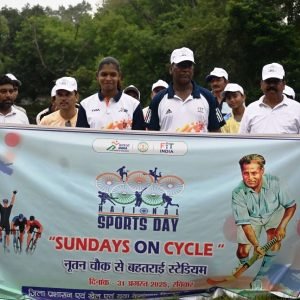 बिलासपुर. 31 अगस्त 2025. :- राष्ट्रीय खेल दिवस के तहत आज बिलासपुर में स्कूली छात्र-छात्राओं और 300 से अधिक खिलाड़ियों ने साइकल रैली निकाली। भारत सरकार के फिट इंडिया कार्यक्रम “सन्डेस ऑन सायकल” (Sundays on Cycle) के तहत पीएमश्री स्वामी आत्मांनद विद्यालय नूतन चौक सरकंडा से स्वर्गीय बी.आर. यादव राज्य खेल प्रशिक्षण केन्द्र बहतराई तक यह रैली निकाली गई। पूर्व ओलम्पियन एवं हॉकी के हेड कोच अजीत इमानुएल लकड़ा और अंतरराष्ट्रीय कबड्डी खिलाडी संजू देवी ने हरी झंडी दिखाकर रैली को रवाना किया।