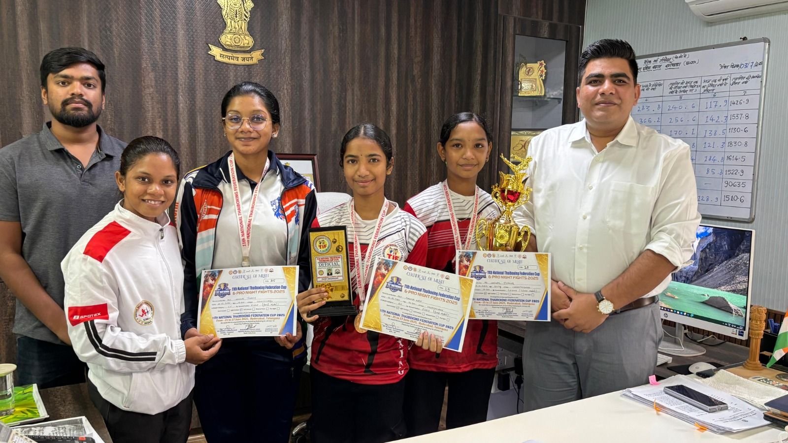 प्रतियोगिता में शानदार प्रदर्शन के बाद तीनों खिलाड़ियों ने आज जिले के कलेक्टर श्री कुणाल दुदावत से सौजन्य मुलाकात की। कलेक्टर श्री दुदावत ने खिलाड़ियों को शुभकामनाएं देते हुए कहा कि दंतेवाड़ा की बेटियाँ आज पूरे राज्य के लिए प्रेरणा बन गई हैं। उन्होंने विश्वास दिलाया कि जिला प्रशासन खेल प्रतिभाओं को हरसंभव प्रोत्साहन और सहायता उपलब्ध कराता रहेगा।