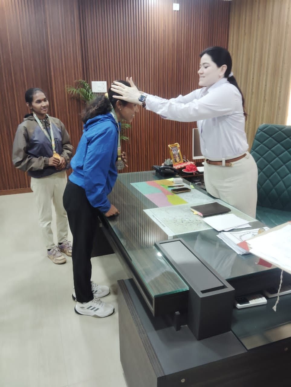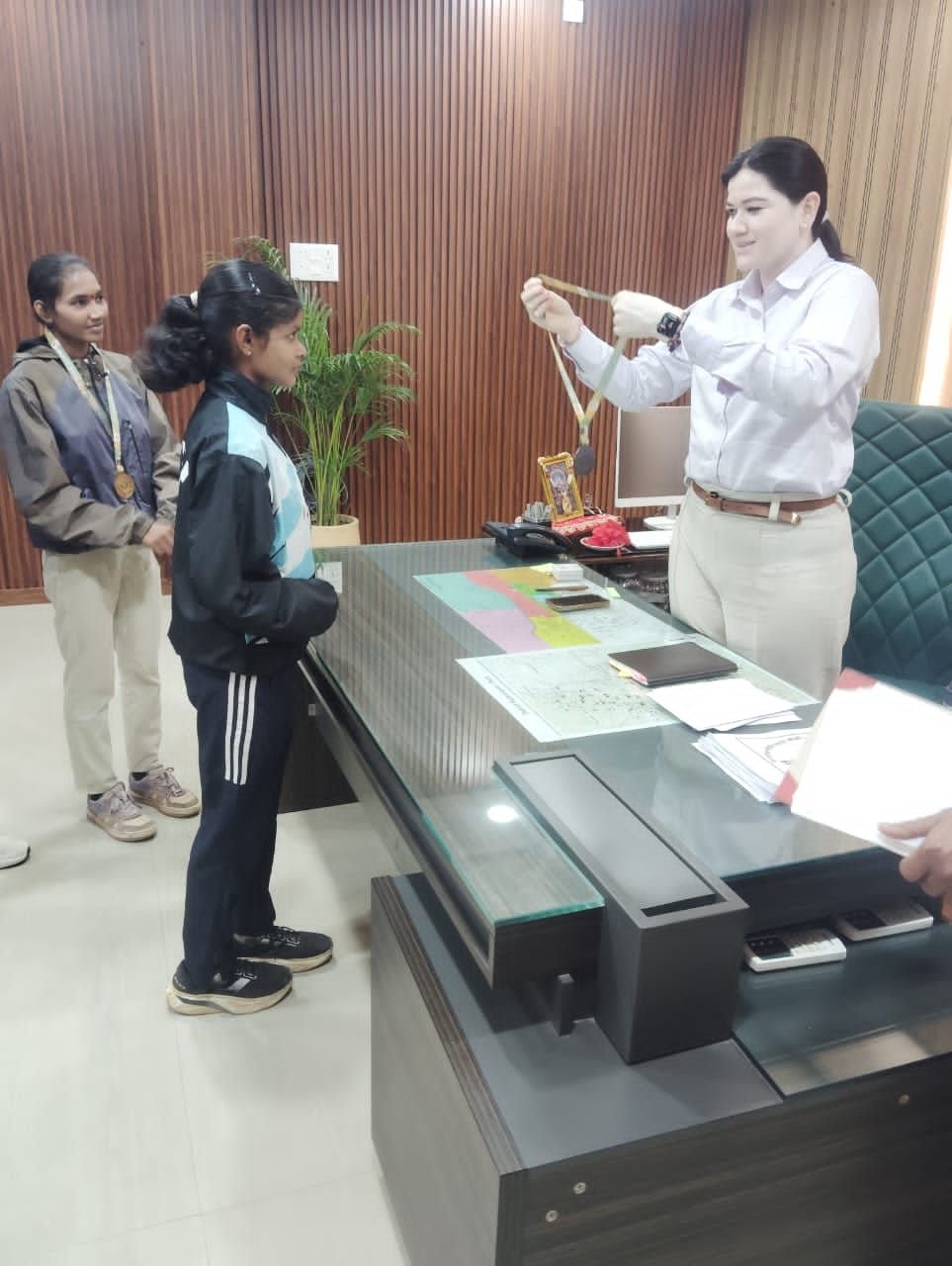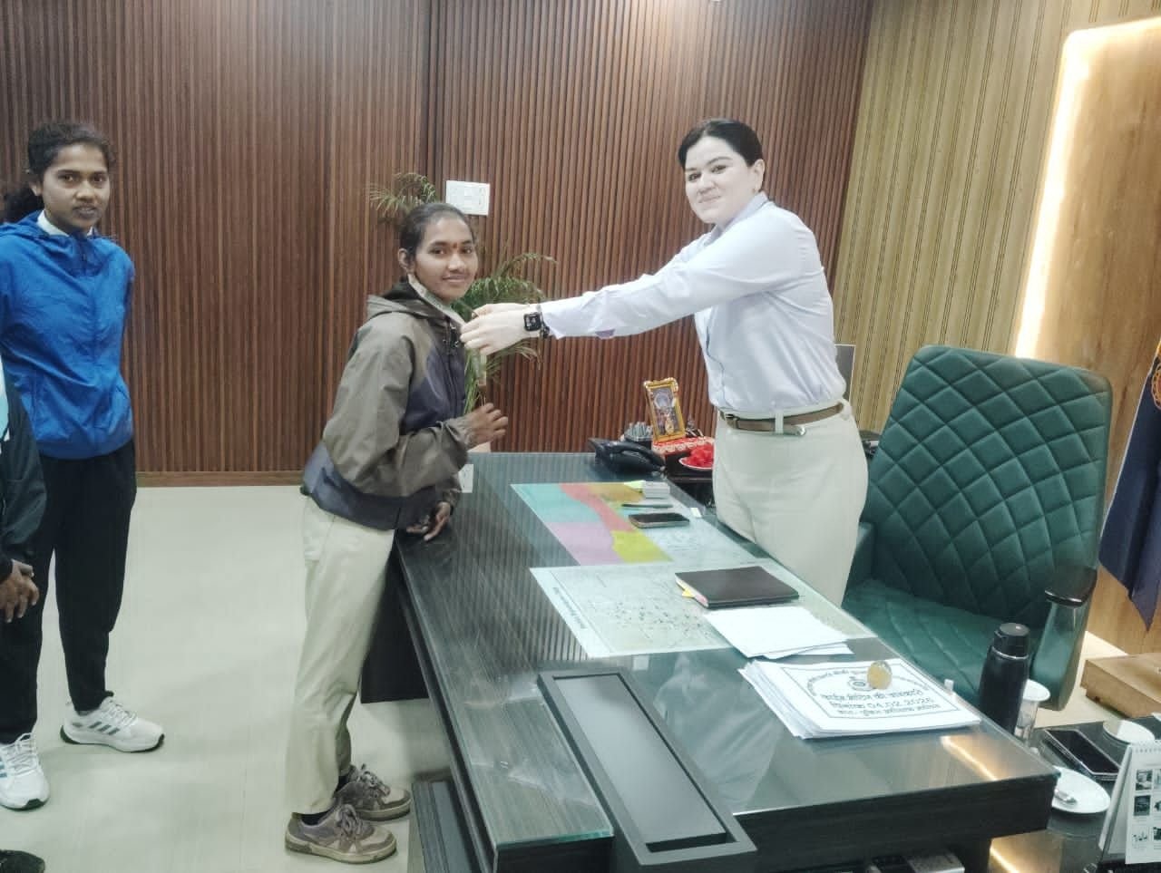 कर्नाटक रवाना होने से पूर्व खिलाड़ियों ने पुलिस अधीक्षक राजनांदगांव सुश्री अंकिता शर्मा से सौजन्य मुलाकात की।