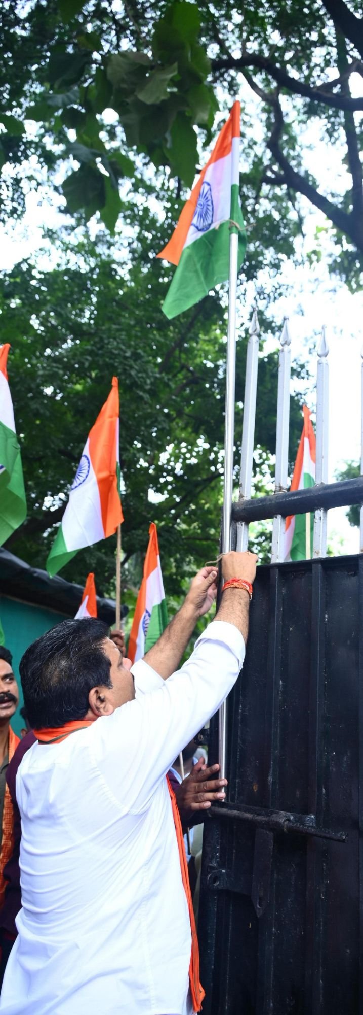 रायपुर, 13 अगस्त, 2025- यशस्वी प्रधानमंत्री नरेंद्र मोदी के आह्वान पर चलाए जा रहे हर घर तिरंगा #HarGharTiranga अभियान के अंतर्गत उपमुख्यमंत्री श्री विजय शर्मा ने आज अपने रायपुर स्थित आवास पर तिरंगा लगाकर आजादी के अमृत महोत्सव में सहभागिता की। उन्होंने इस अवसर पर प्रदेशवासियों को संदेश देते हुए कहा कि तिरंगा हमारे देश की आन, बान और शान का प्रतीक है और यह हम सभी को एकता, साहस और बलिदान की याद दिलाता है।