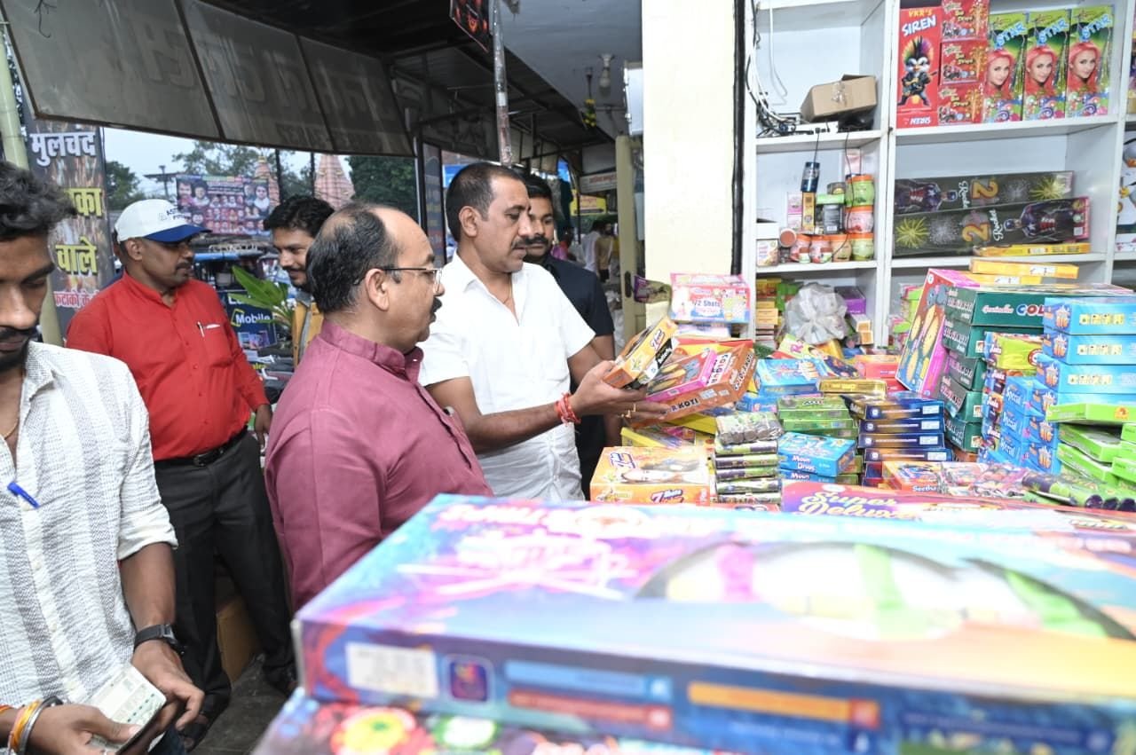 फ़टाके की दुकान पर पहुंचे डिप्टी सीएम साव ने बच्चों एवं परिवार के लिए फटाके खरीदे।