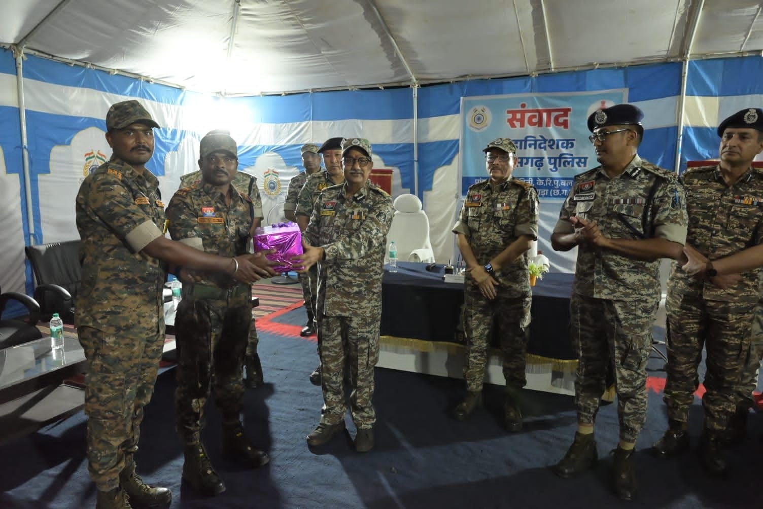 इसी क्रम में पुलिस महानिदेशक छत्तीसगढ़ एवं उनकी टीम ने जवानों से भेंट करने हेतु भटापाल एसटीएफ हब तथा बारसूर सीआरपीएफ कैंप का भी दौरा करते हुए बेस कैंपों में तैनात डीआरजी, एसटीएफ, सीएपीएफ एवं सीएएफ के जवानों से संवाद किया। कठिन भौगोलिक परिस्थितियों एवं चुनौतीपूर्ण सुरक्षा वातावरण में अदम्य साहस, अनुशासन एवं कर्तव्यनिष्ठा के साथ कार्य कर रहे जवानों की सराहना की।