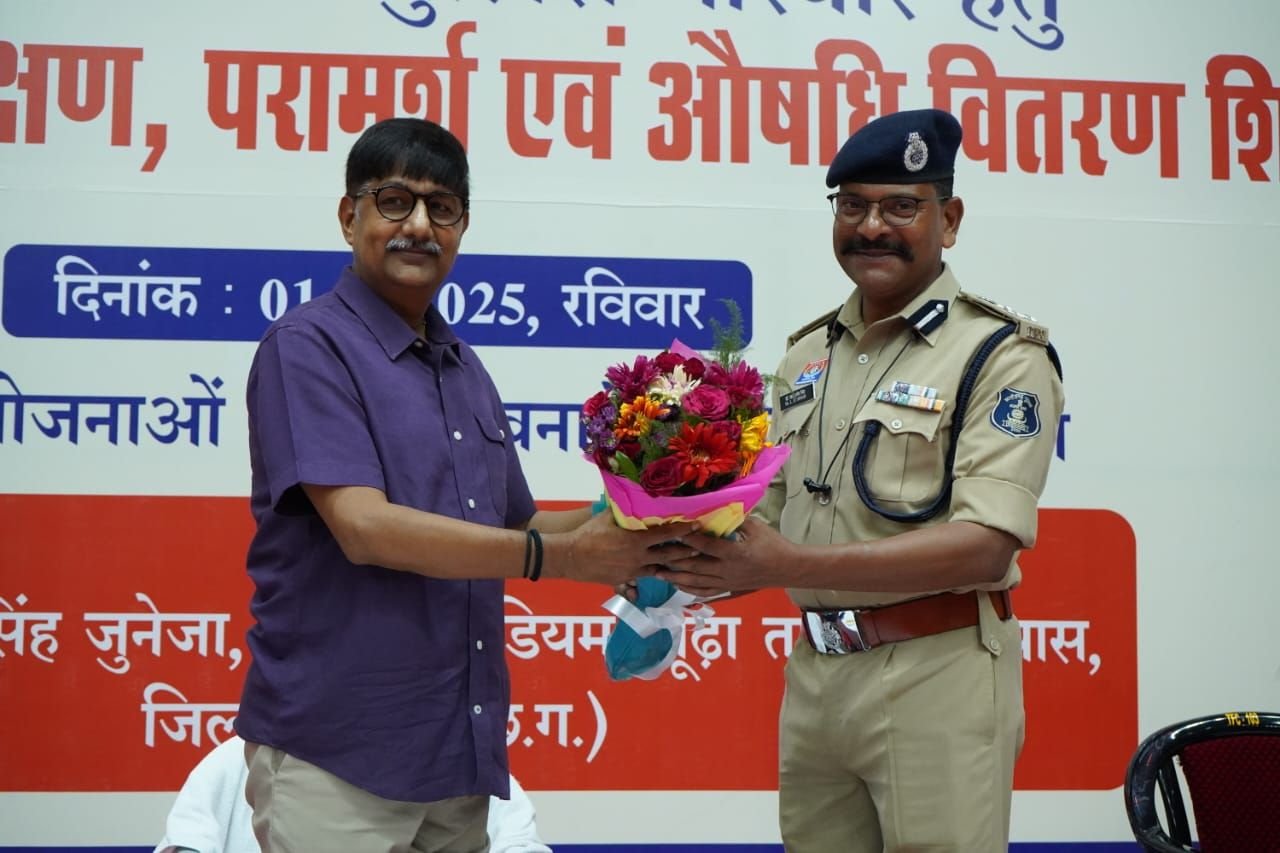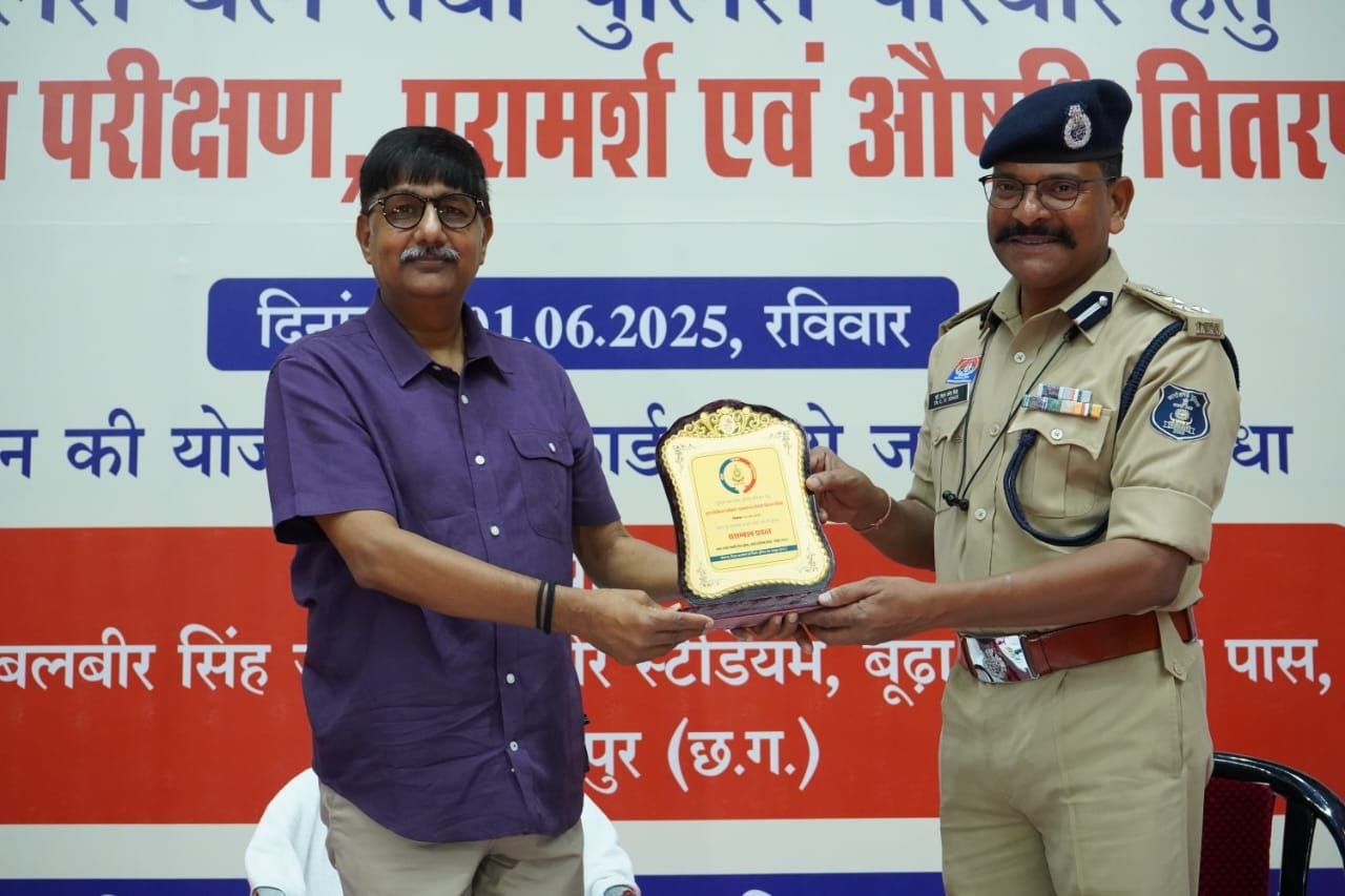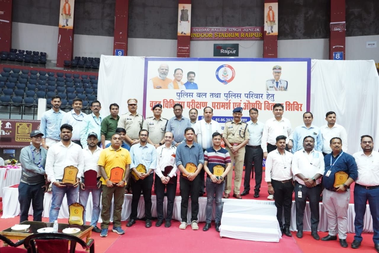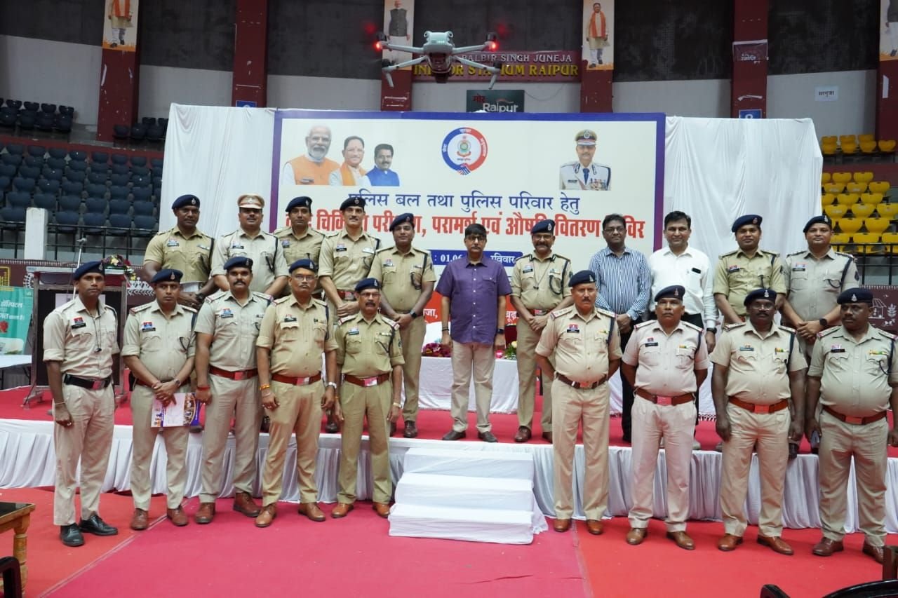 रायपुर 01 जून 2025:- पुलिस महानिदेशक छ0ग० एवं पुलिस महानिरीक्षक, रायपुर रेंज रायपुर, के मार्ग निर्देशन मे जिला प्रशासन के सहयोग से वरिष्ठ पुलिस अधीक्षक रायपुर के सतत् निर्देशन में आज -01 जून को पुलिस बल तथा पुलिस परिवार हेतु वृहद चिकित्सा परीक्षण, परामर्श एवं औषधि वितरण शिविर शासन के योजनों के अंतर्गत अयुष्मान कार्ड, वयवंदन कार्ड, ड्रायविंग लायसेंस, आधार कार्ड, राशन कार्ड बनाये जाने की सुविधा के साथ आयोजित किया गया। यह आयोजन जिला प्रशासन तथा जिला पुलिस रायपुर के संयुक्त तत्वधान में आयोजित किया गया। यह वृहद चिकित्सा परीक्षण परामर्श एवं औषधि वितरण शिविर छ०ग० रायपुर मे पुलिस बल तथा पुलिस परिवार हेतु प्रथम बार इतने वृहद स्तर पर आयोजित की गई है