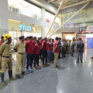 हवाई हमले की आशंका के परिदृश्य में सुरक्षाबलों ने मॉल को सुरक्षित ज़ोन में बदलने, लोगों को संरक्षित स्थानों की ओर ले जाने, और अफरातफरी रोकने की रणनीति को व्यवहारिक रूप से प्रदर्शित किया।