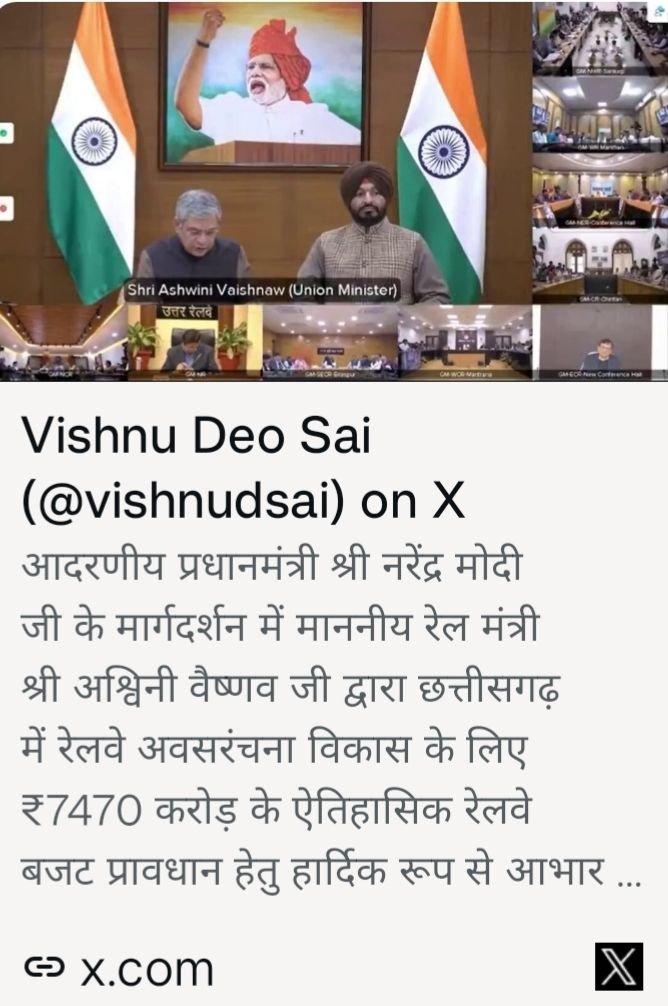 डबल इंजन सरकार का बड़ा तोहफा – छत्तीसगढ़ में रेलवे विकास के लिए ₹7,470 करोड़: मुख्यमंत्री विष्णुदेव साय ने प्रधानमंत्री नरेंद्र मोदी और रेल मंत्री अश्विनी वैष्णव के प्रति किया आभार प्रकट