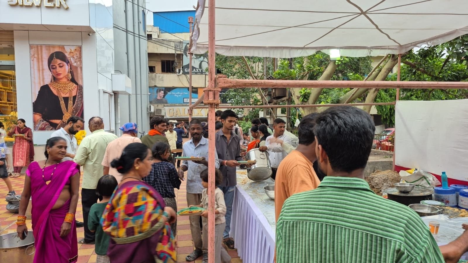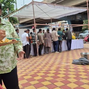भोजन में पुरी, पुलाव, सब्जी और मीठा मे गुलाब जामुन परोसा गया। लगभग 735 लोगों ने भोजन प्राप्त किया।