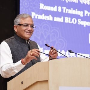 मुख्य निर्वाचन आयुक्त श्री ज्ञानेश कुमार ने प्रशिक्षण कार्यक्रम का उद्घाटन करते हुए छत्तीसगढ़, हरियाणा, मध्यप्रदेश और उत्तरप्रदेश से आए बूथ लेवल अधिकारी, बीएलओ सुपरवाइज़र्स, ईआरओ तथा डीईओ को संबोधित किया। उन्होंने निर्वाचन व्यवस्था को पारदर्शी, सुसंगत और विधिसम्मत बनाए रखने में इन अधिकारियों की भूमिका को अत्यंत महत्वपूर्ण बताया।