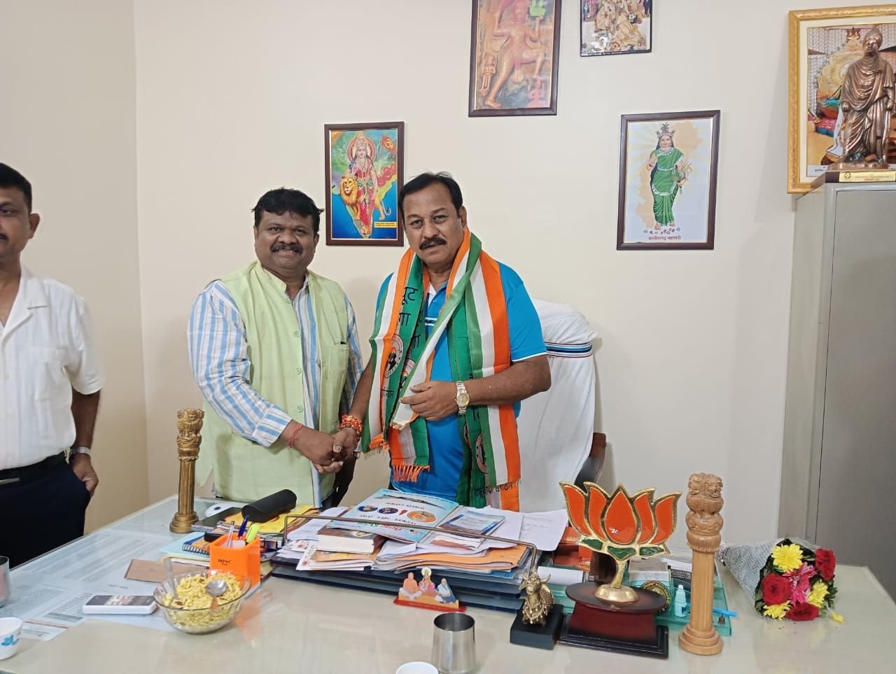 भिलाई नगर 20 अक्टूबर 2025:- राष्ट्रवादी संगठन सैल्यूट तिरंगा के राष्ट्रीय अध्यक्ष का भिलाई शहर में आगमन राष्ट्रीय संरक्षक सांसद विजय बघेल के निवास पर हुआ इस अवसर पर सांसद ने भिलाई आगमन पर उनका पुष्प कुछ से स्वागत किया और छत्तीसगढ़ इकाई के द्वारा हितेश तिवारी, मनोज ठाकरे फौजी अरुण सावरकर प्रशांत क्षीरसागर द्वारा पुष्प गुच्छ भेंट कर स्वागत किया है इस अवसर पर राष्ट्रवादी संगठन द्वारा चलाए जा रहे अभियान के विषय में और आगामी कार्यक्रम को लेकर विचार मंथन हुआ।