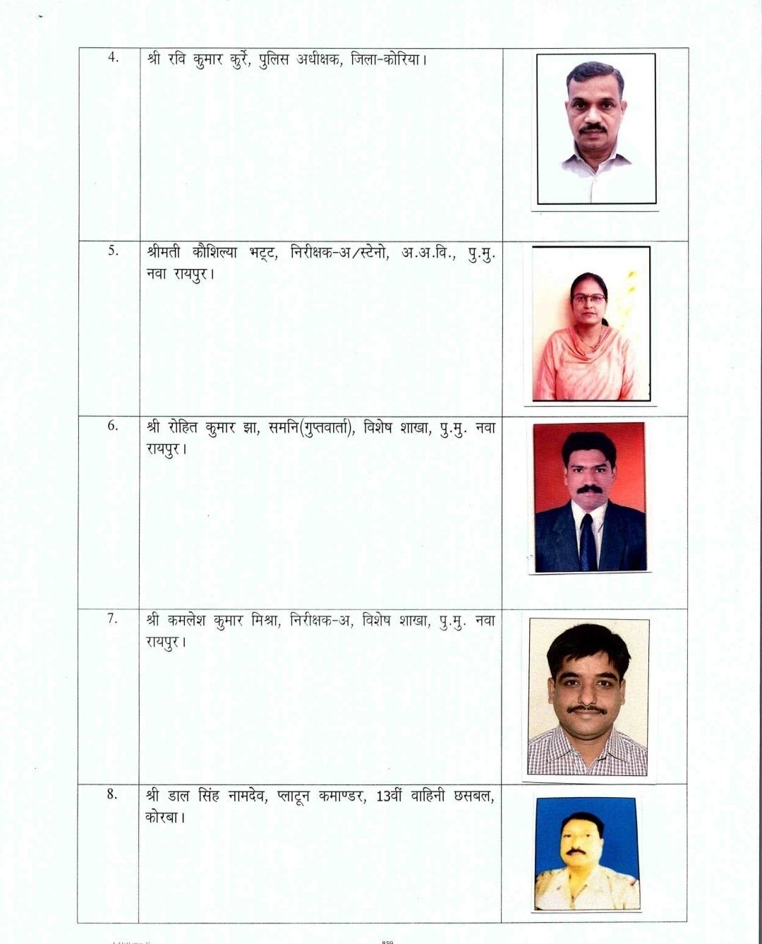 7 श्री कमलेश कुमार मिश्रा, निरीक्षक-अ, विशेष शाखा, पु.मु. नवा रायपुर।